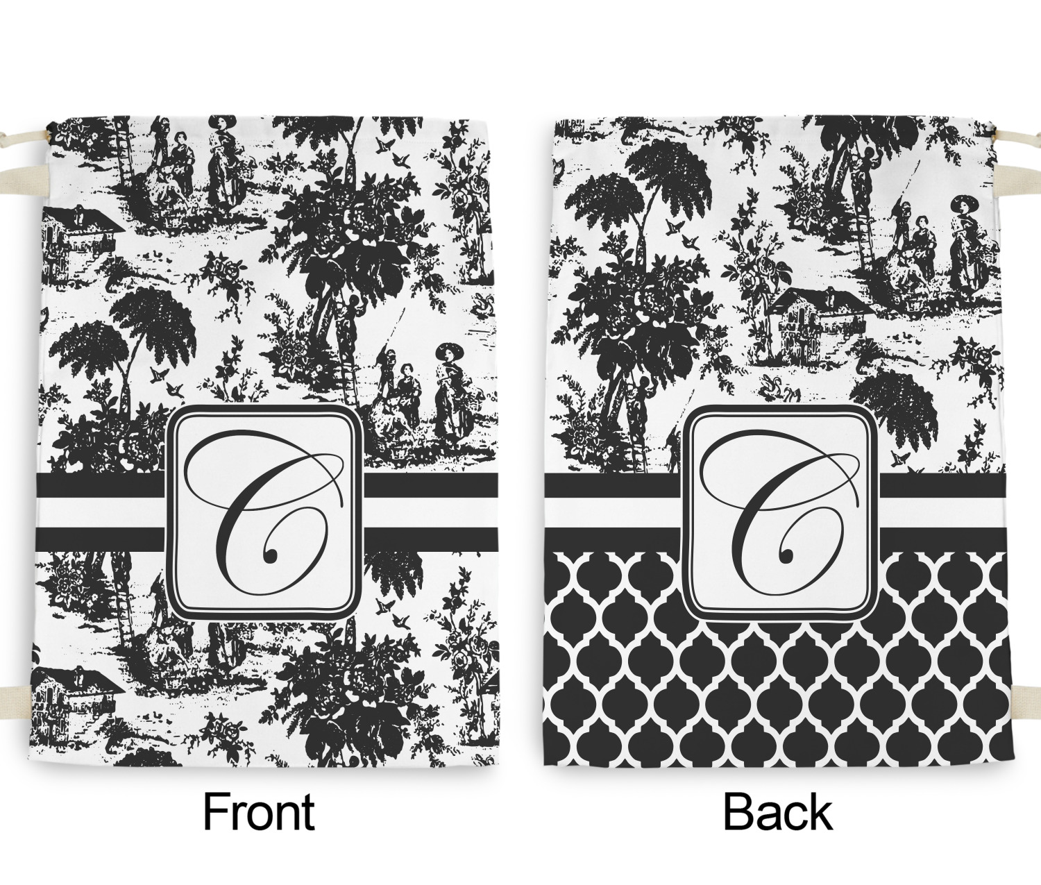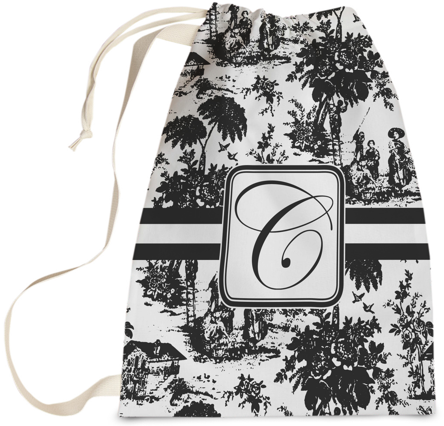 Carry your laundry in style with these customized laundry bags. Available in two sizes, featuring a natural colored woven strap and a cinch cord, these bags hold a lot of clothes or anything else you want to fit in them.