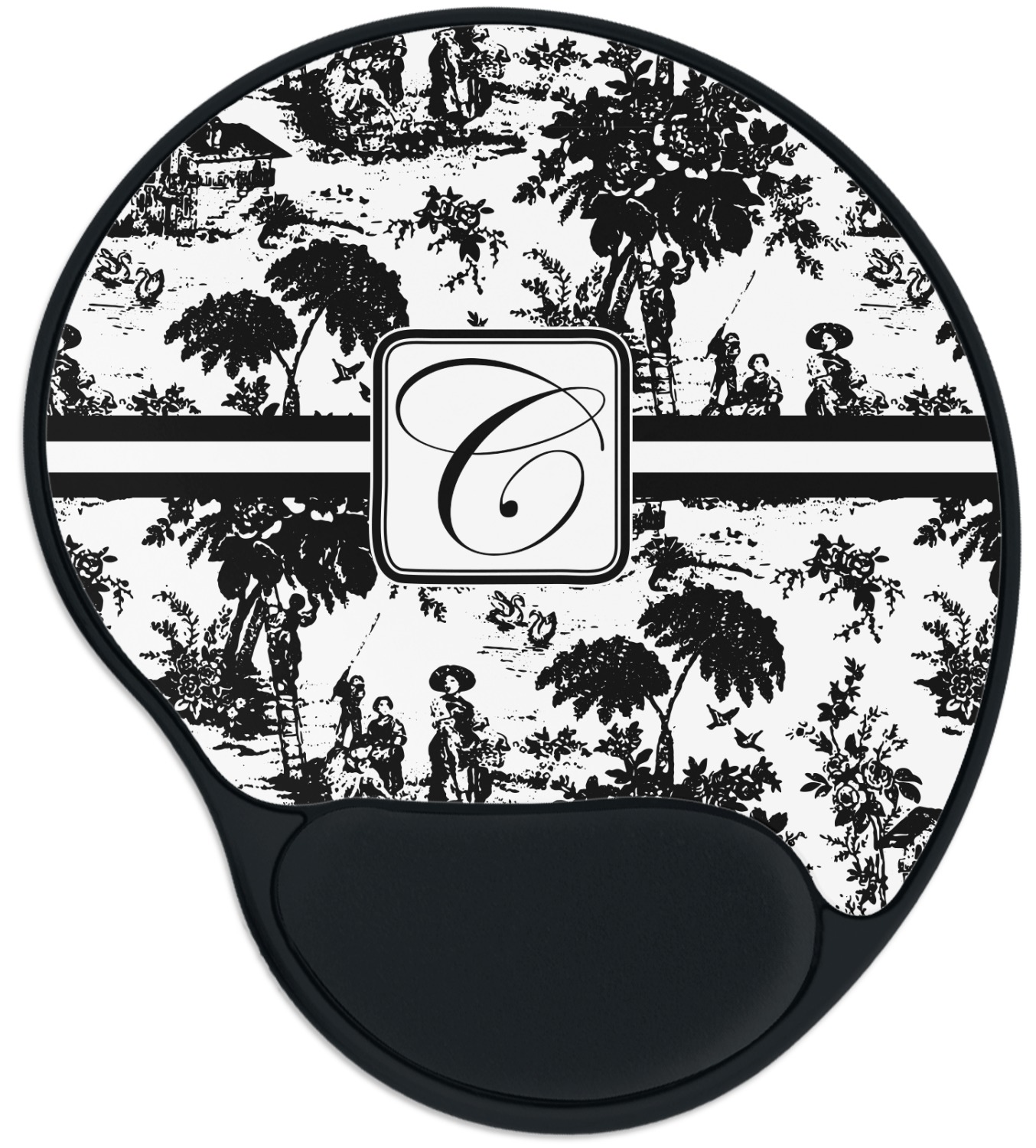 The top of these personalized mouse pads are made from a polyester, while the underside is plastic. The back of these mouse mats include rubber feet to prevent any slippage while in use. A padded wrist support, made from plush memory foam, occupies the bottom section of these computer mouse pads. Your customized design is printed onto the face of this mat, with the remaining sides and support piece colored in black. The mat itself is rounded and measures at 10.25" x 9.13".