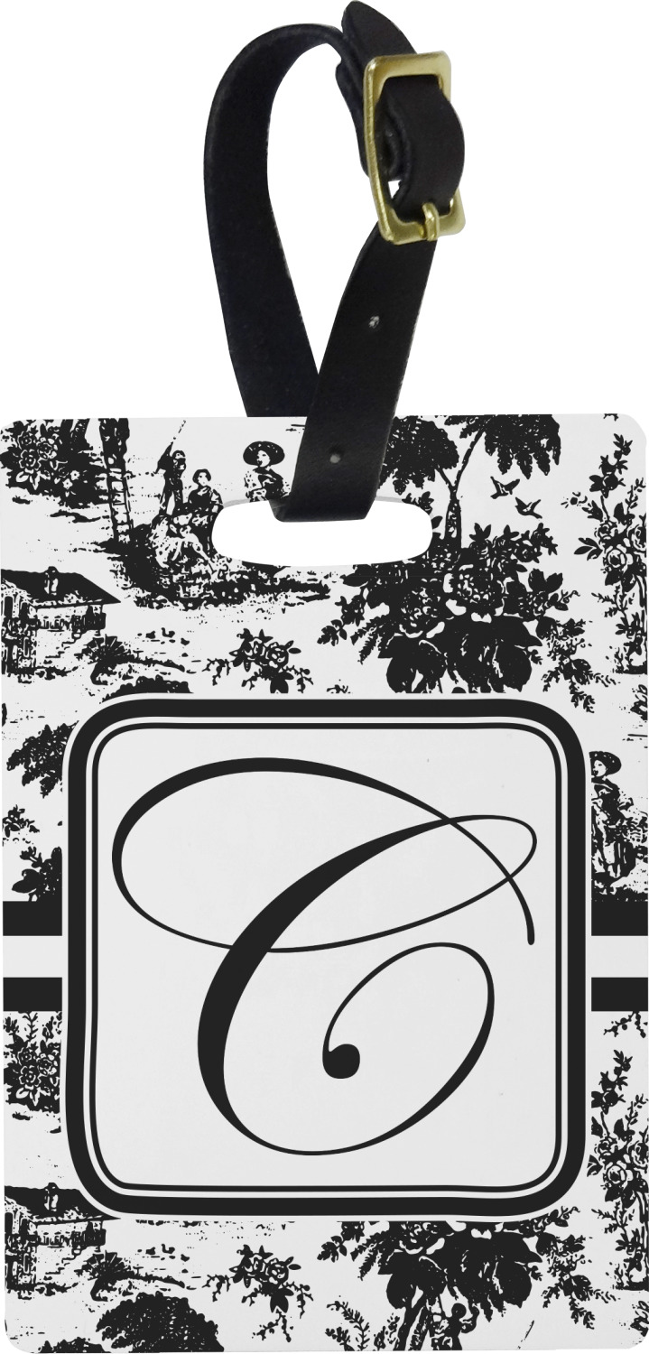 These personalized bag tags are sold in a variety of shapes, so that you may find the product that meets your vision exactly. We sell a round luggage tag, which measures at approximately 4" x 4". Our square luggage tag is about 3.5" x 3.5", while our rectangular version is 2.75" x 4 ".