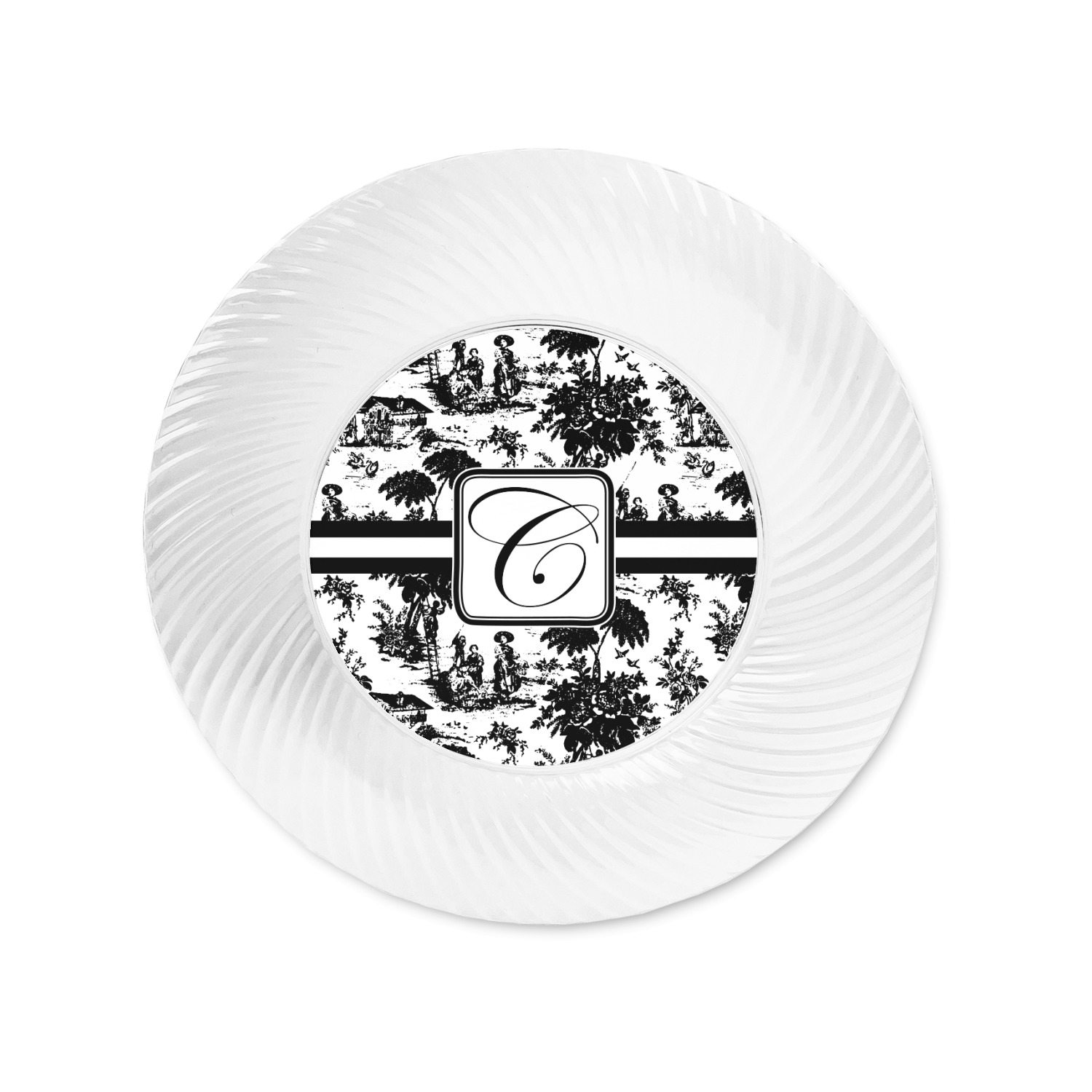 Made from a beautiful clear plastic plate as a base, your design is printed to the underside of the plate. The outside of the plate has a classic swirl texture to it for a high quality look and feel.