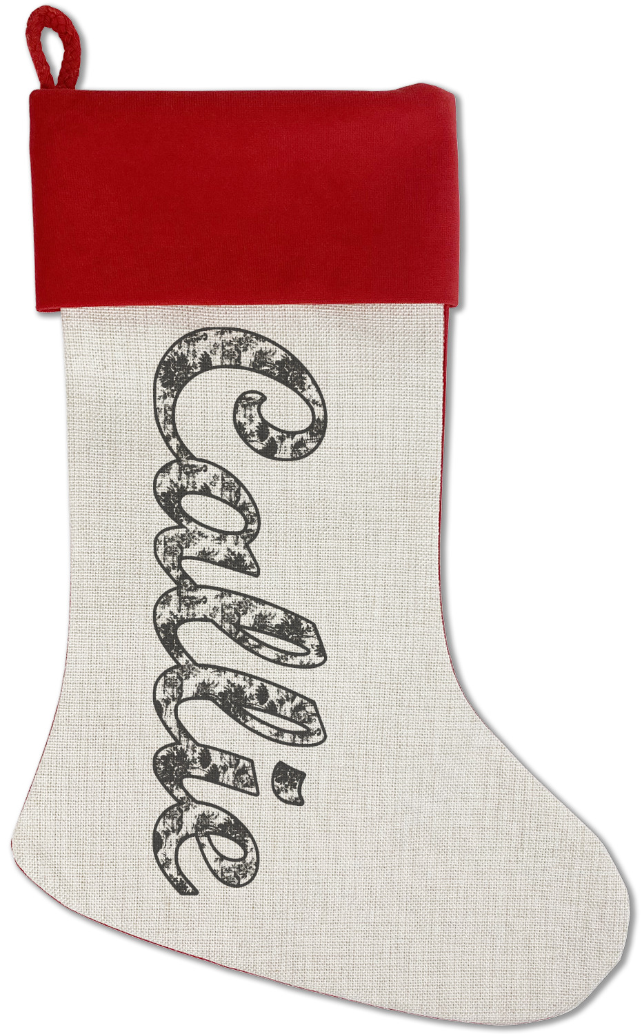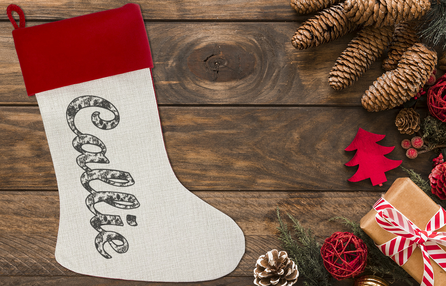 Our classic red stockings are made from a soft, yet durable polyester material perfect for any stocking stuffer! The front of our Christmas stockings have a linen front that boldly displays your custom design accented with a lush red cuff resting all around the stocking. Each stocking is approximately 18x12 with a durable cotton rope loop for hanging.