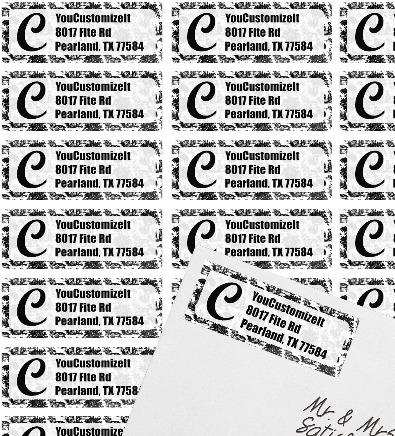 Made of a professional grade, vinyl sticker material, these custom return address labels are shaped into rectangles, but the beautifully rounded edges give the address labels an elegant finish. These mailing labels are printed onto three sheets, with each sheet having 27 labels, resulting in 81 labels in total. With our return address stickers, you're able to customize your address (which is printed on a white background), the graphic accompanying your address, and the border surrounding your address.