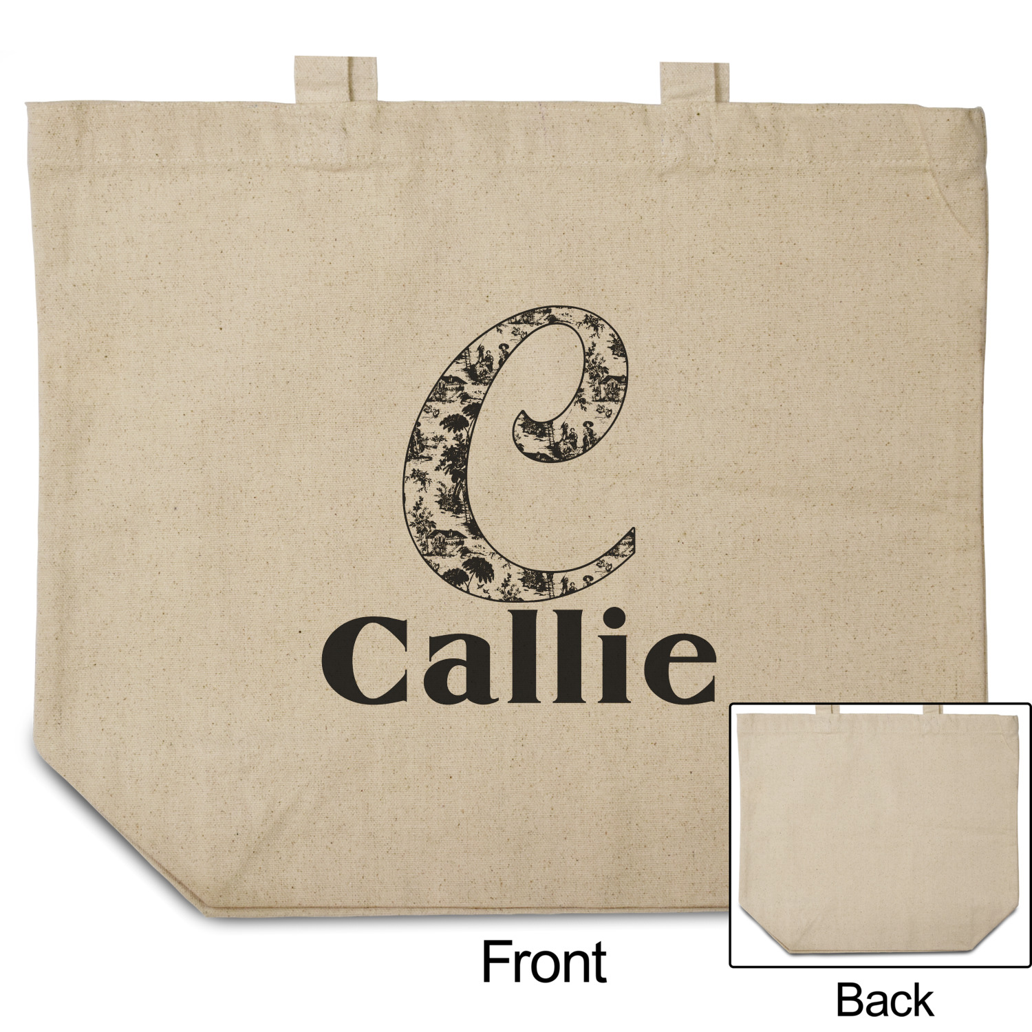 These cotton totes are washable and easy to care for, and they can be folded flat for storage. Your artwork, logo, or photo is printed in full color directly on the cotton tote in the front.