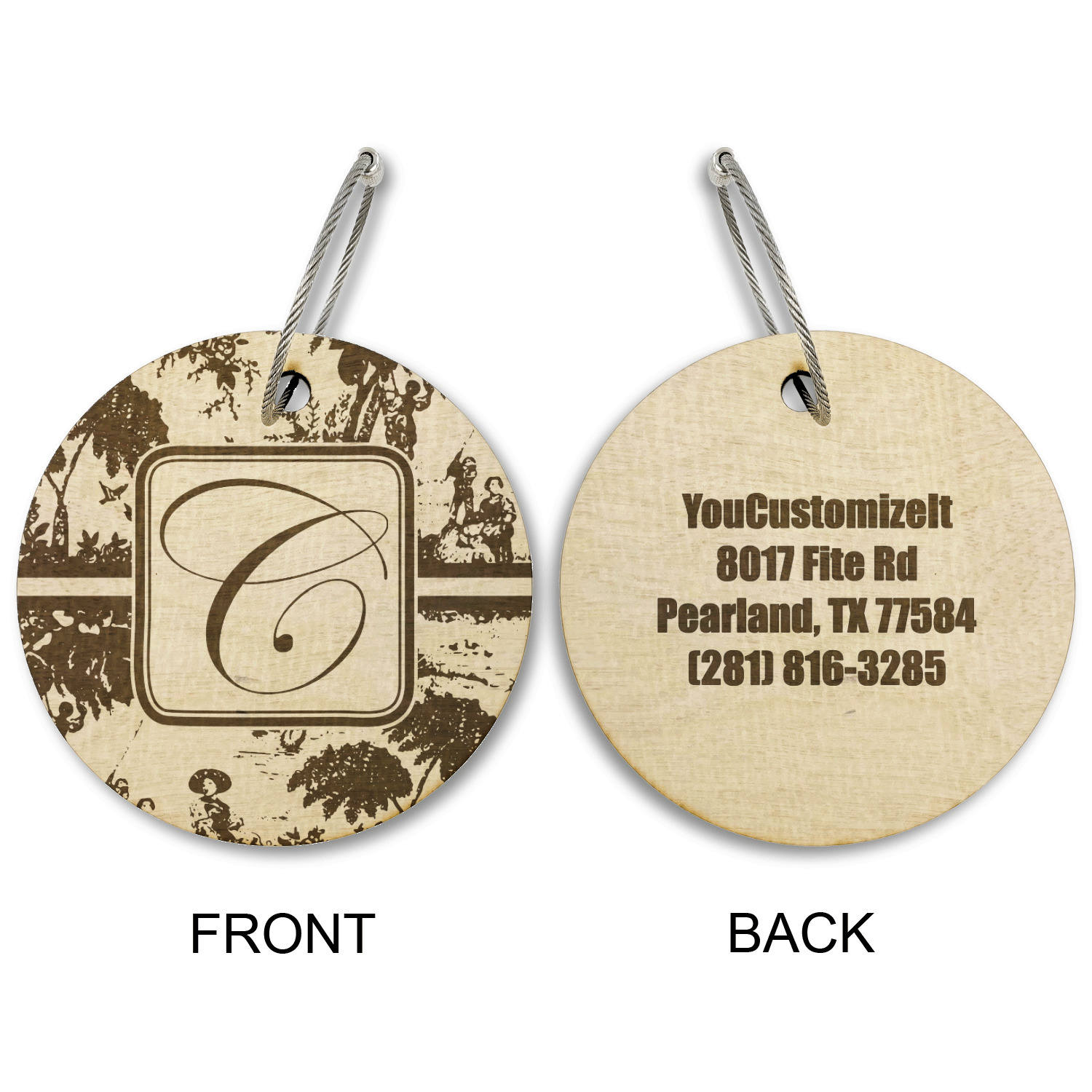 Made from a premium hardwood, these luggage tags are laser engraved and cut just for you. The front contains your design of choice and the back has your contact information to ensure your luggage gets back to you if ever lost.