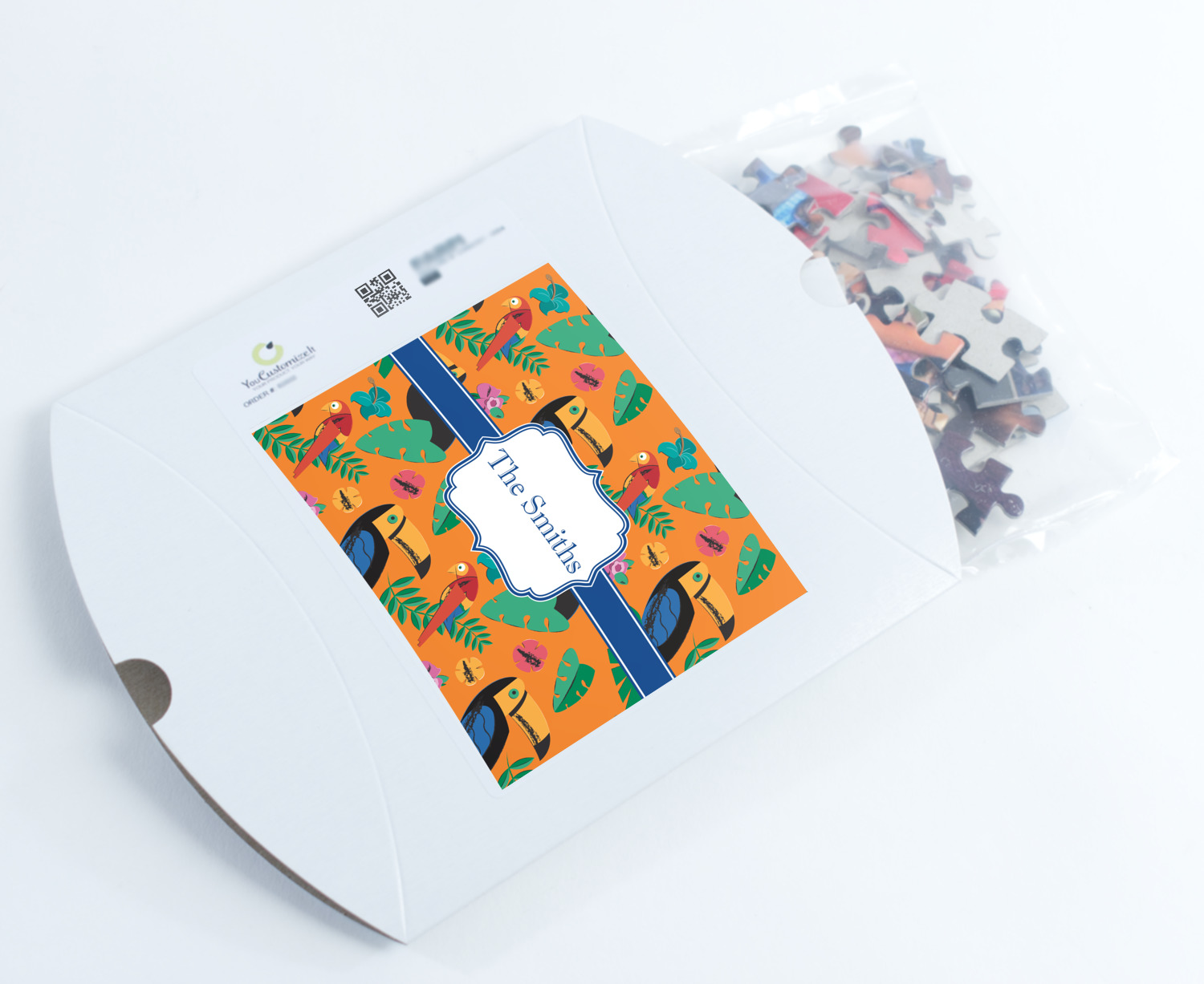 Depending on the look you are trying to achieve, you can add; a thematic pattern or background, with a photo in a frame and text or personalization to your puzzle. Basically if you can imagine it, you can design it!