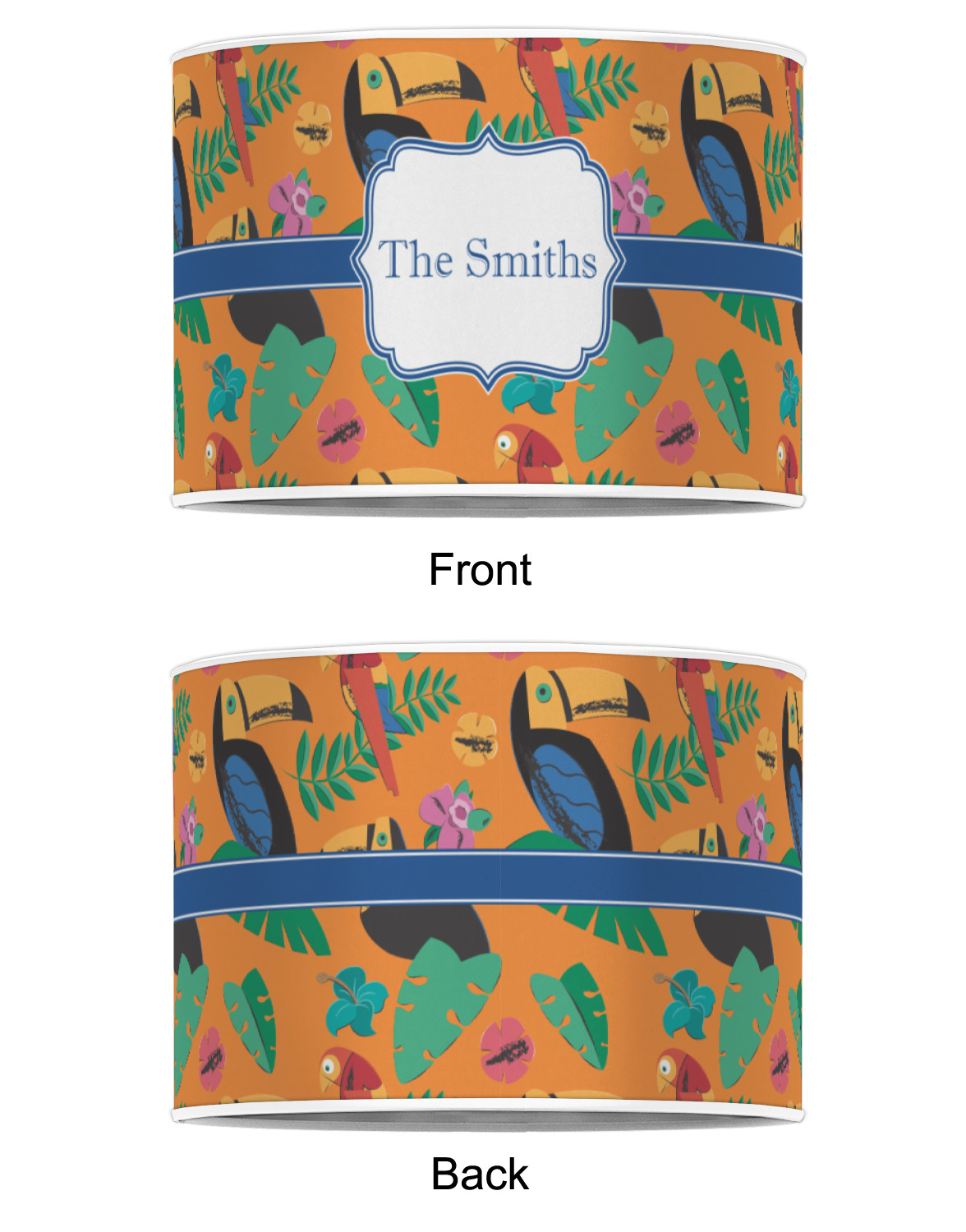 Our customized lamp shades also come in 3 different sizes: 8", 12" and 16", measuring at 8" in diameter by 6" tall, 12" in diameter by 8" tall, and 16" in diameter by 10" tall, respectively.