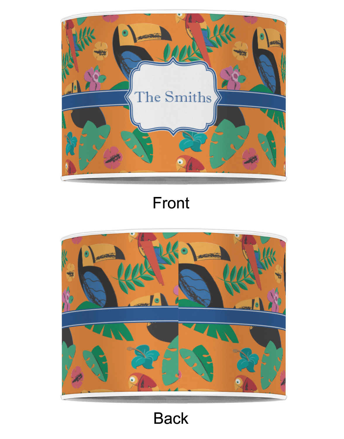 Our customized lamp shades also come in 3 different sizes: 8", 12" and 16", measuring at 8" in diameter by 6" tall, 12" in diameter by 8" tall, and 16" in diameter by 10" tall, respectively.
