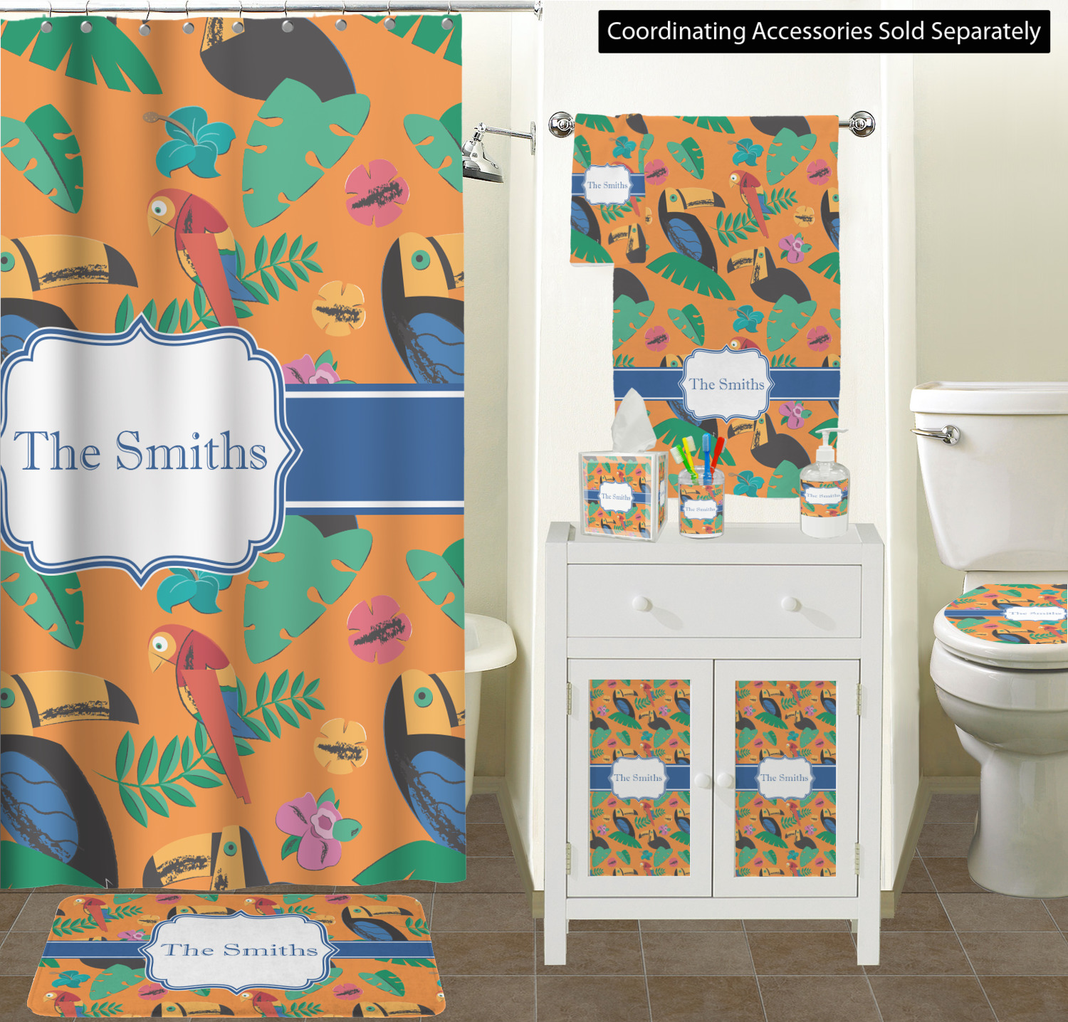 We also have coordinating bathroom accessories like personalized soap dispensers and personalized tissue box covers. Pair them together to create a bathroom accessory set!!