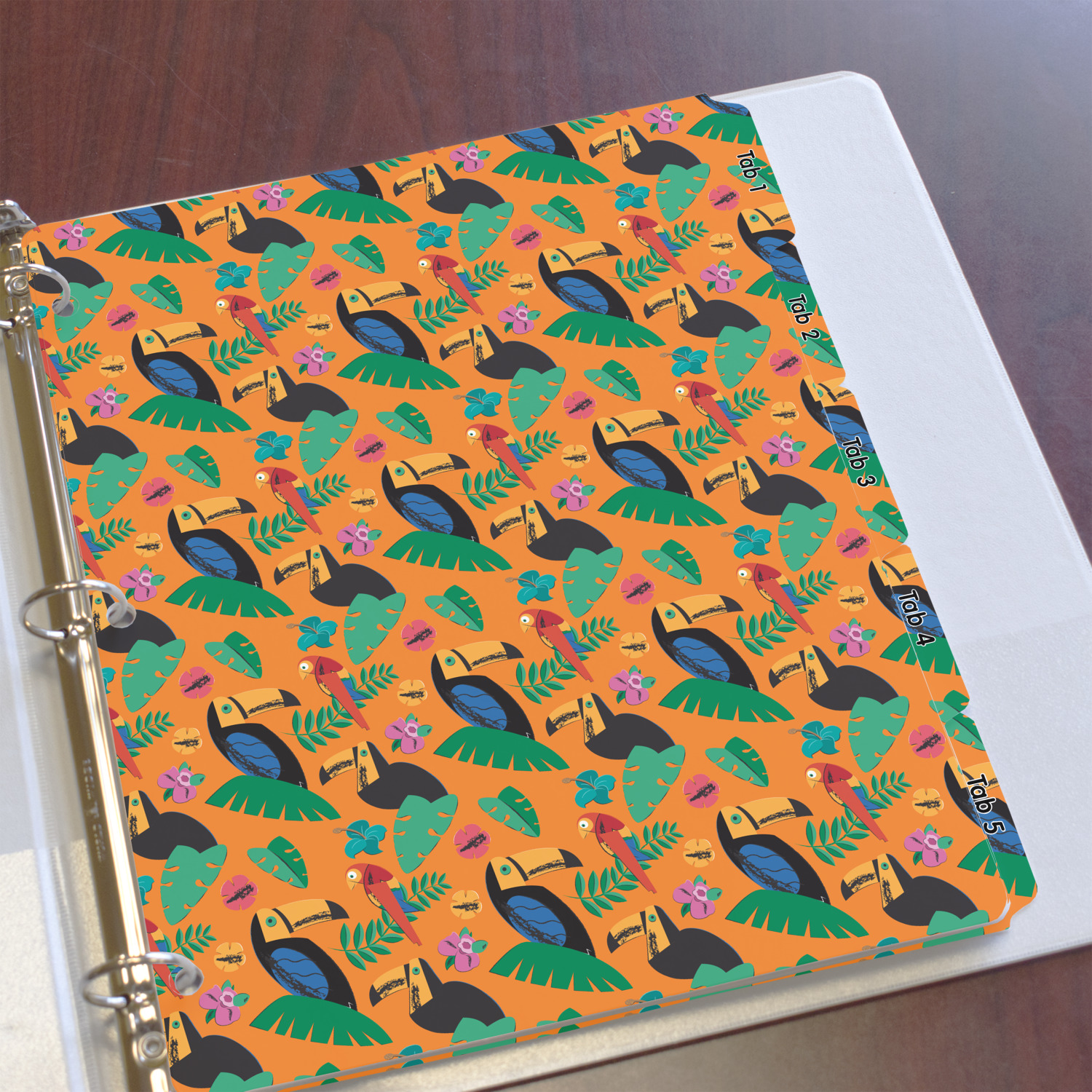 Whether you use binders at school or at work, we have designs to suit all of them. Available in 5 or 6 tab sets, you are sure to find a set to suit your needs. The back of each one is white and can be used to take notes, write vital information on, etc.