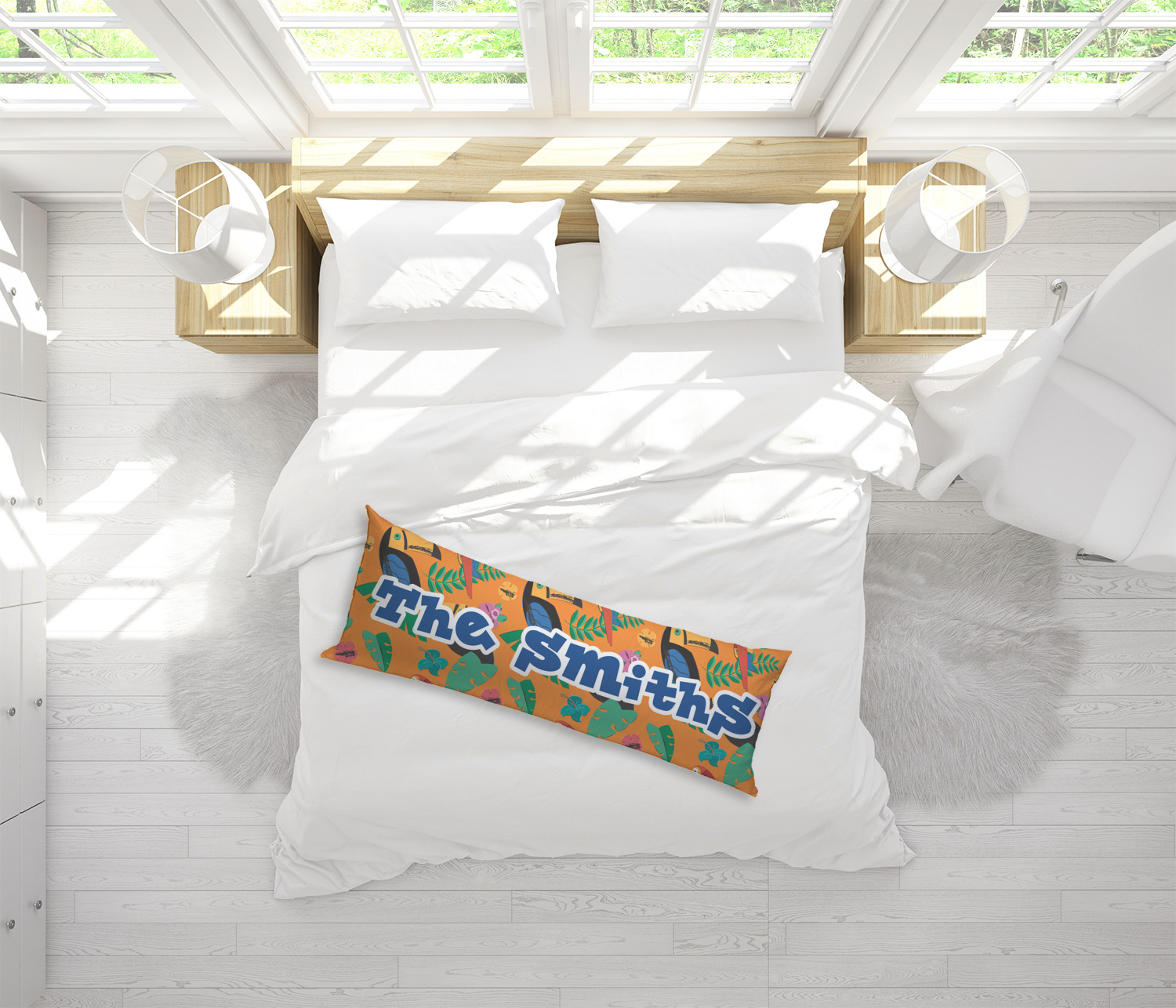An opening on the side of the custom body pillow case allows for the insertion and removal of a pillow. This custom body pillow case measures at 54" x 20" and displays your design on its topside.