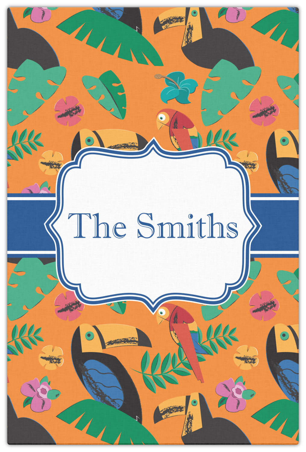 What's more classic Hawaiian than orange, rainbow-colored parrots, toucans, and flirty flowers? This bright design will send you straight back to better days, spent lounging on a beach in some tropical paradise.