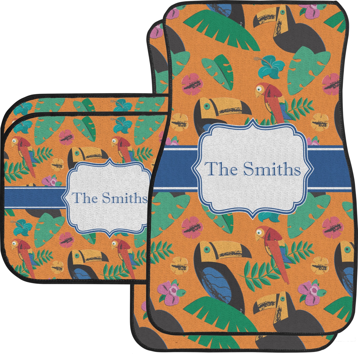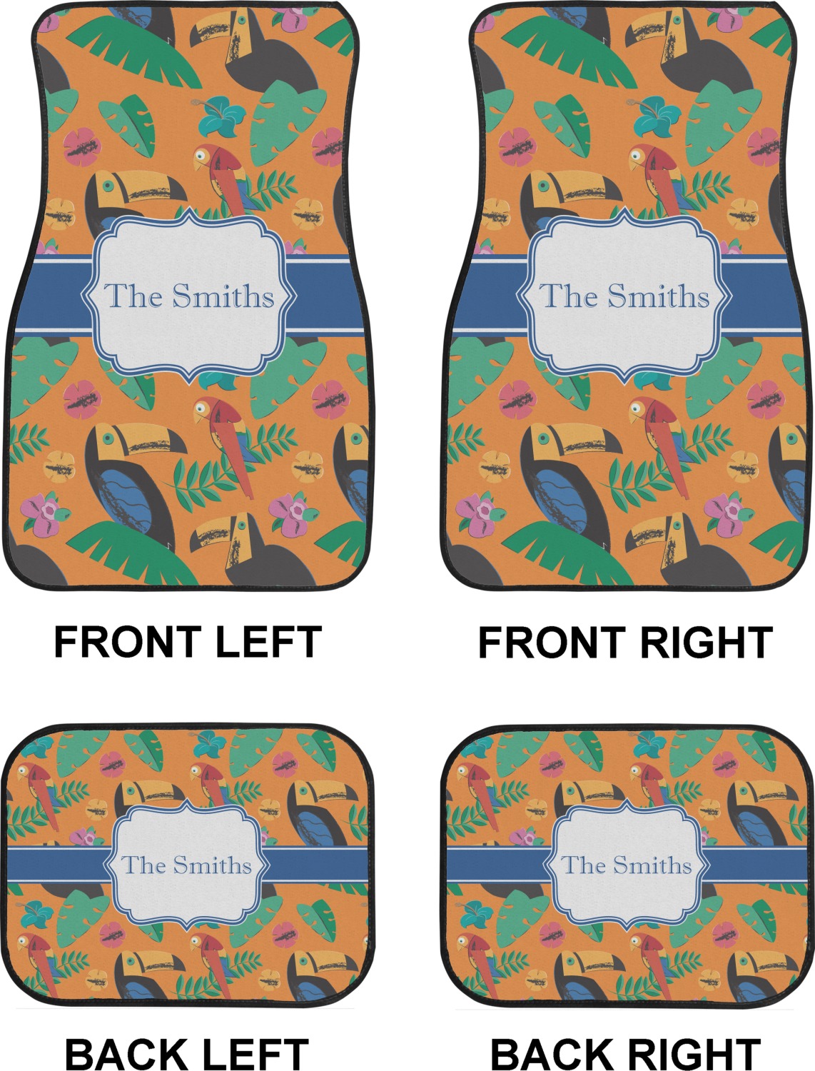 We craft our auto floor mats mats from polyester, apply a black finish to the edges, and lined at the bottom to prevent slippage. These mats protect your floors from grass, mud, and any accidental spills. We display your personalized design on the front face of each mat. The sizes of these car floor liners are standardized to provide a versatile fit for all vehicles. The front rows car mats measure at 17 by 26.5 inches, while the back rows measure at 17 by 13 inches. We sell three packages of car floor mats. You can purchase a pair of front row car mats, a pair of back row car mats, or a set of front row and back row car mats. To make an informed purchase, we recommend measuring the surface area of your car floors.