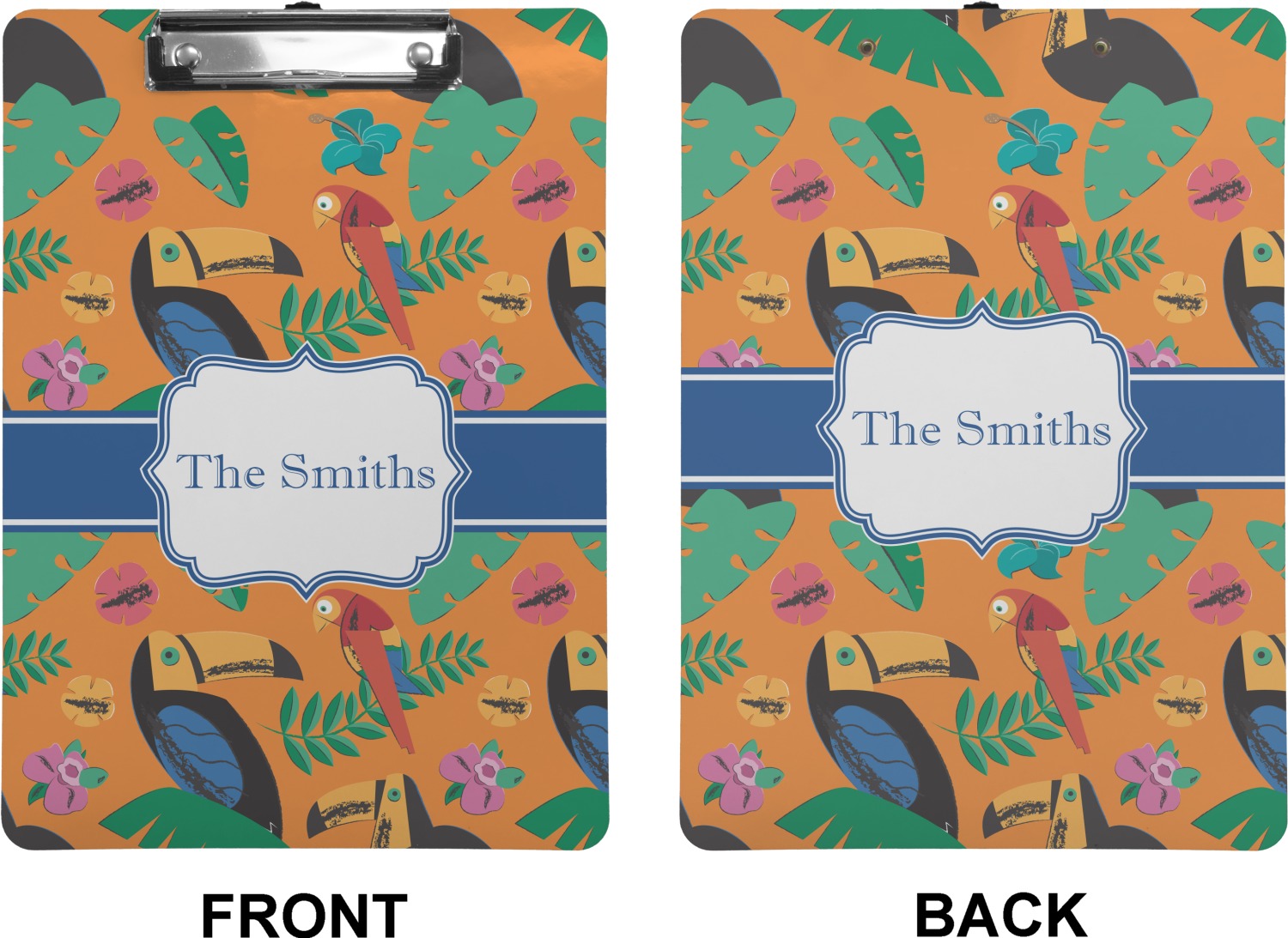 These custom clipboards are made from a strong hardboard and are coated with a glossy finish that accentuates the colors of your design. Alongside a retractable hook at its top, these decorative clipboards also feature sturdy clips to secure several sheets of paper. We sell these clipboards in two separate sizes. Our letter size measures at 12.5" L x 9" W, while our legal clipboard is approximately 15.5" L x 9" W. On both models, your personalization is printed on both sides of this clipboard and can be customized individually.