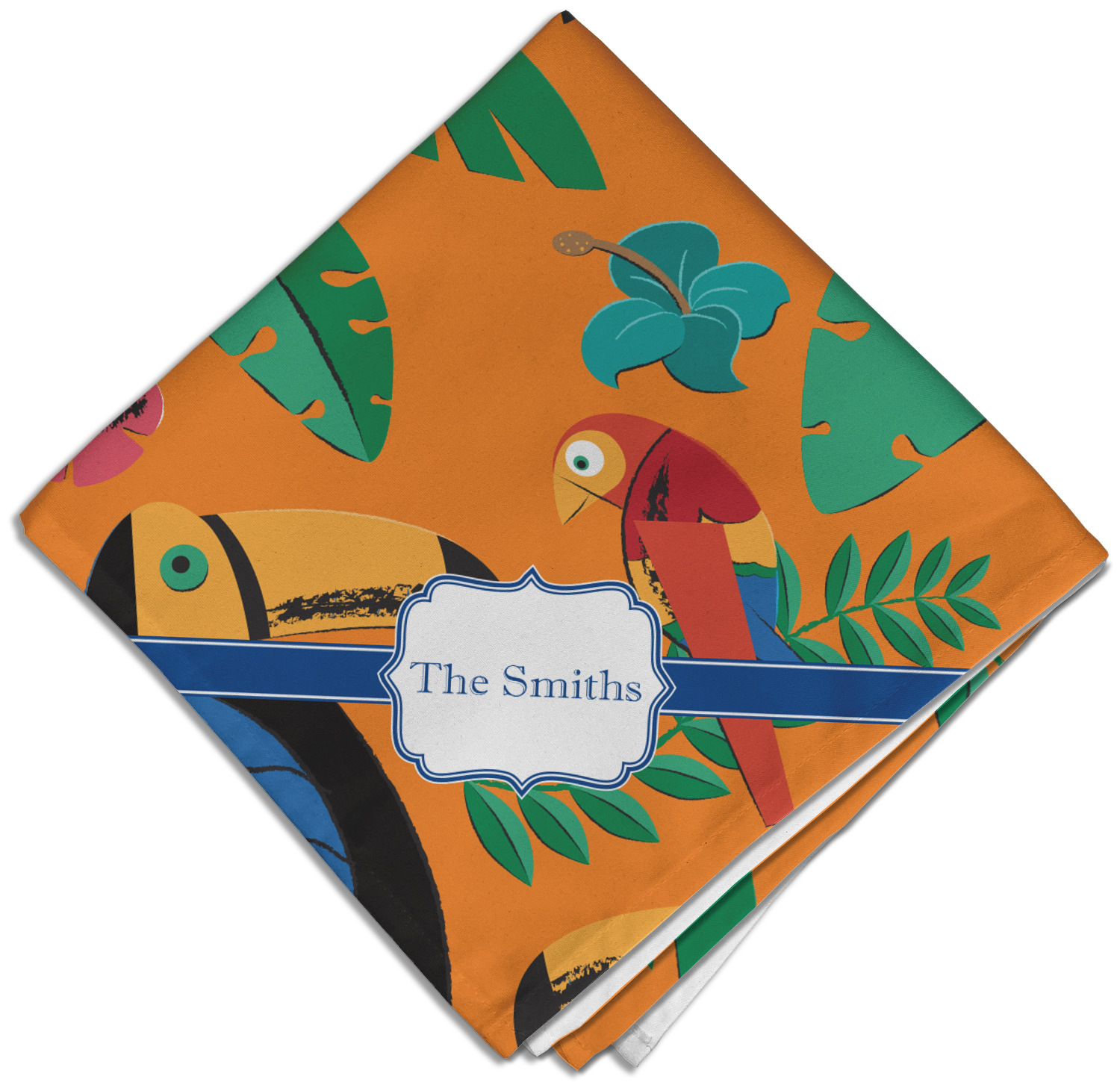 Each customizable cloth napkin is a polyester material guaranteed for long-term use. Since our napkins are cloth, it serves as a great reusable and eco-friendly dining decor. We sell personalized napkins individually or as a set of 4! Print your own unique design on all four napkins, or create four individual designs for each napkin! We offer two different napkin sizes - Cocktail napkins (approx. 10 x 10) and Dinner napkins (approx. 20 x 20). We print your design on one side, perfect for displaying your custom designed lunch napkins in any fold or table setting!