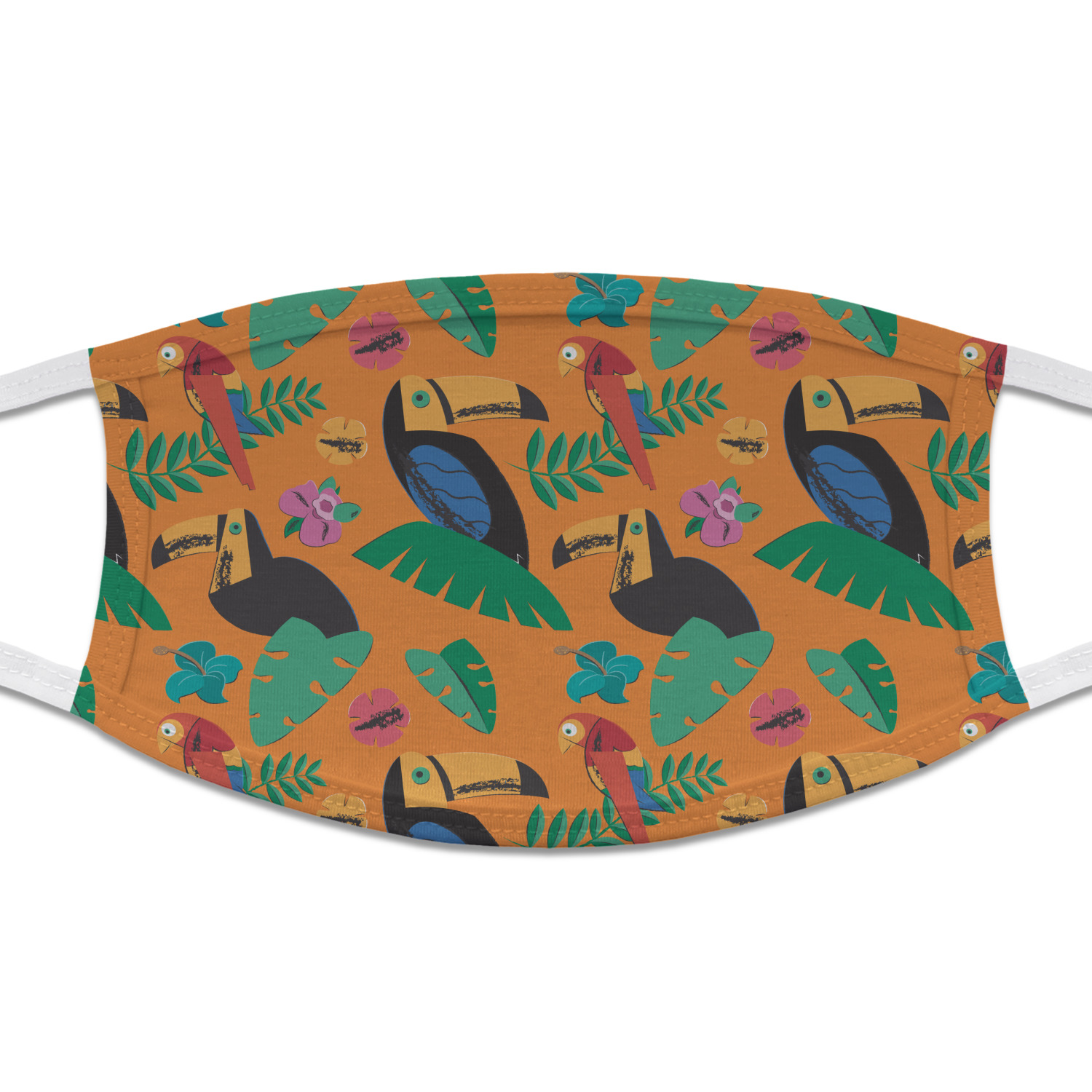 The masks are made from two layers of the soft jersey fabric. The outside layer will be printed with your design, while the inside layer is white. The body of the mask is trimmed and double stitched with the same jersey fabric. The masks are approximately 7 inches wide by 4.75 inches high