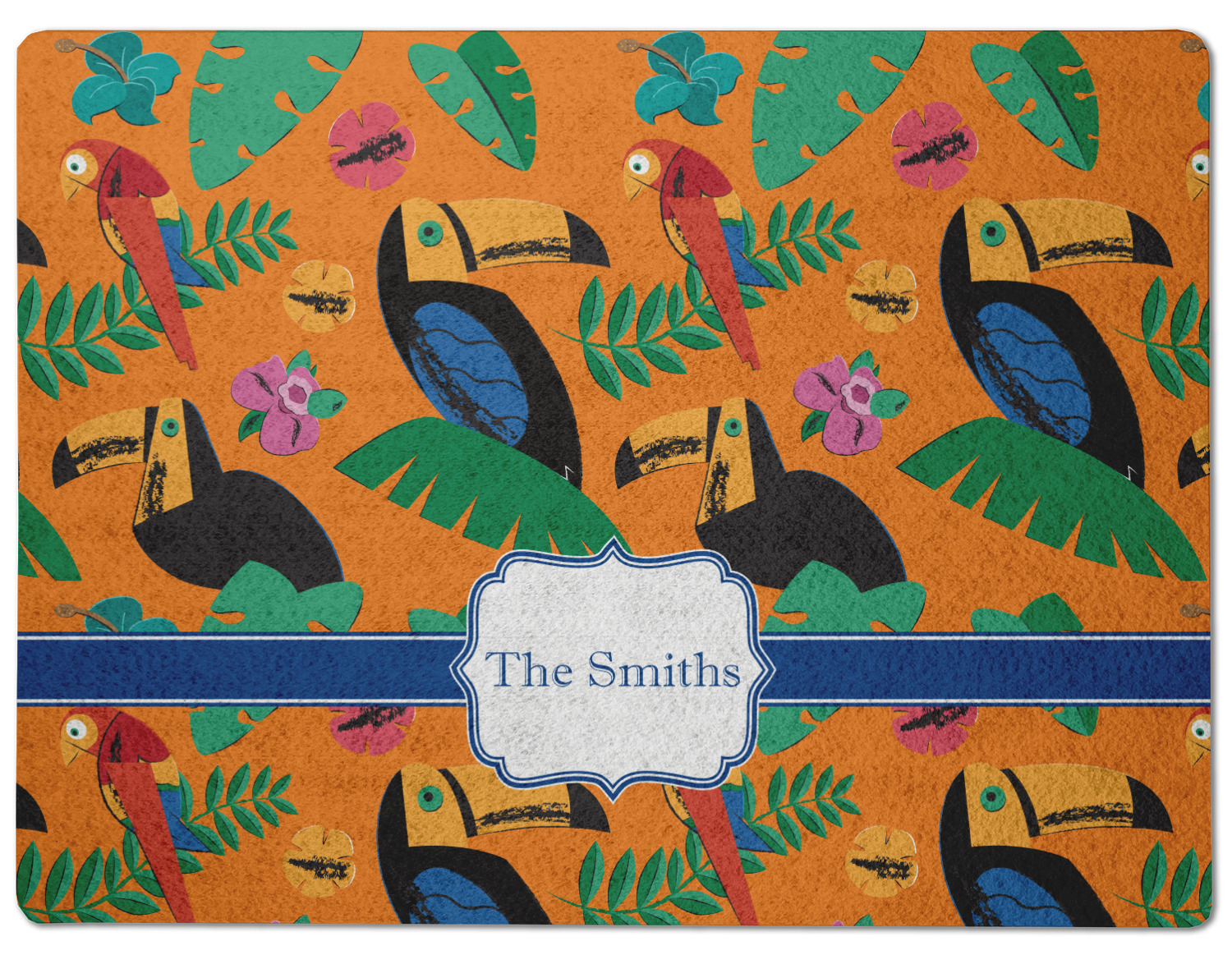 What's more classic Hawaiian than orange, rainbow-colored parrots, toucans, and flirty flowers? This bright design will send you straight back to better days, spent lounging on a beach in some tropical paradise.
