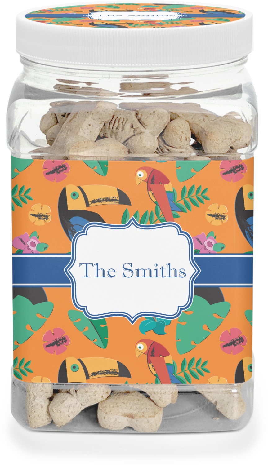 Spoil your pup with a brand new, personalized dog treat container! Your dog will be sure to wag his/her tail whenever he/she catches sight of it perched on your countertop!