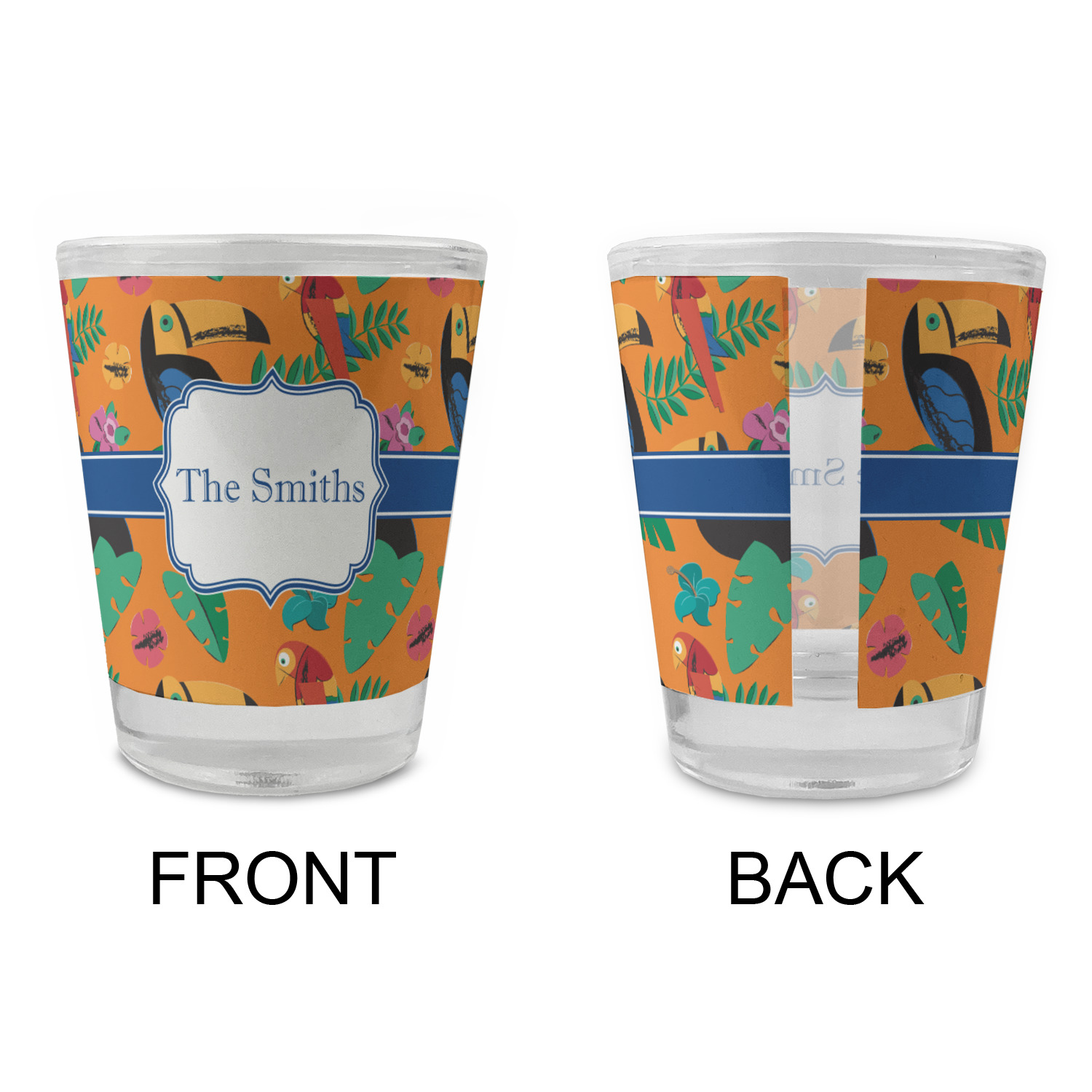Made with frosted glass, these shot glasses are printed in full color with the design of your choice. They are a standard 1.5oz shot glass and are 2.4" tall. The print is wrapped around the shot glass in a full wrap and boldly displays your customization.