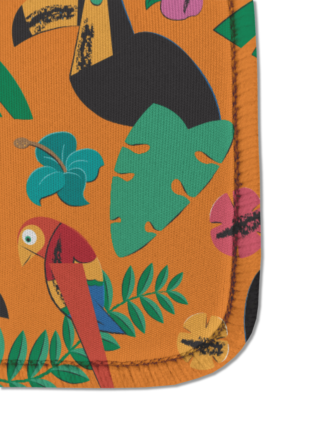 What's more classic Hawaiian than orange, rainbow-colored parrots, toucans, and flirty flowers? This bright design will send you straight back to better days, spent lounging on a beach in some tropical paradise.