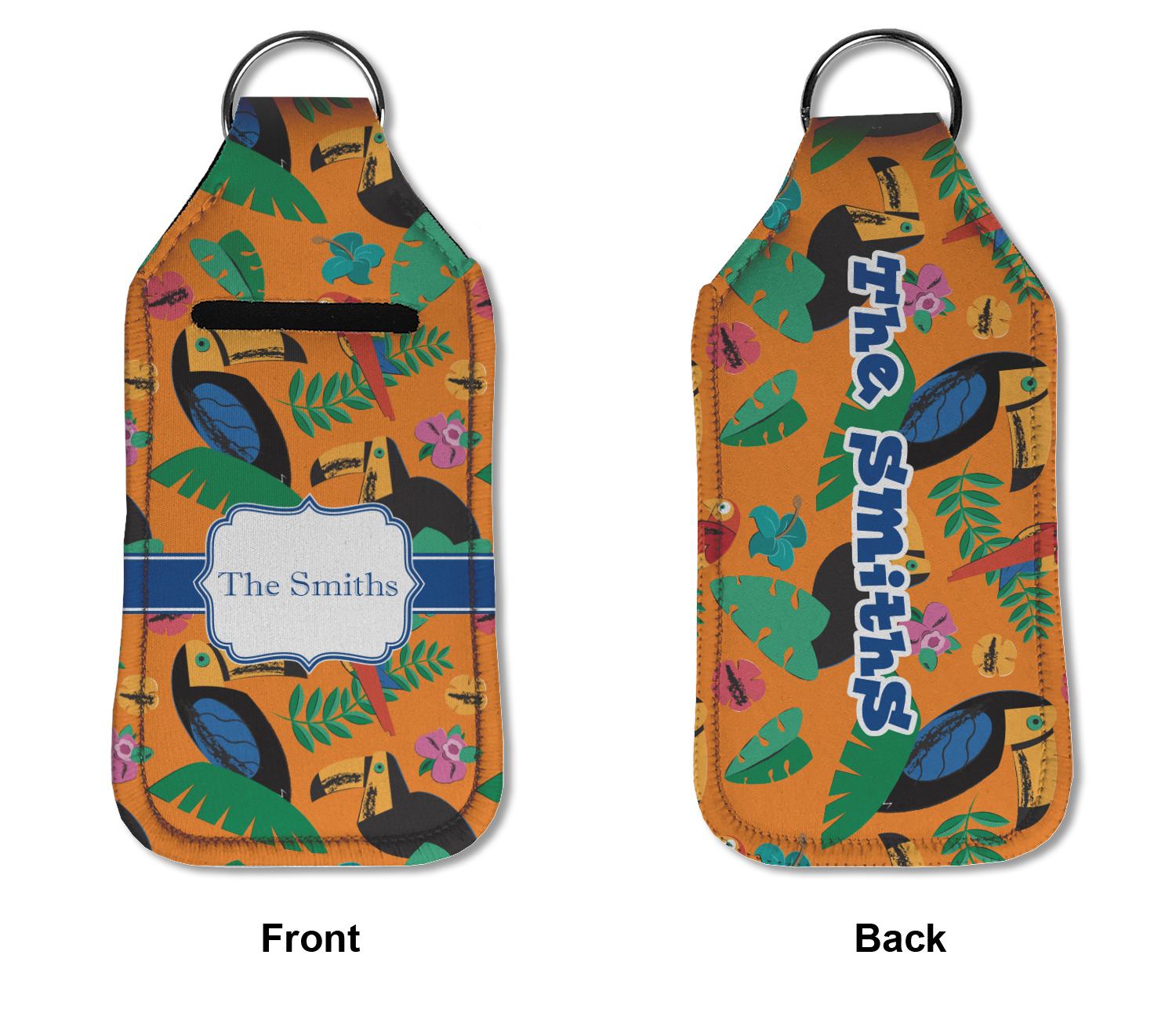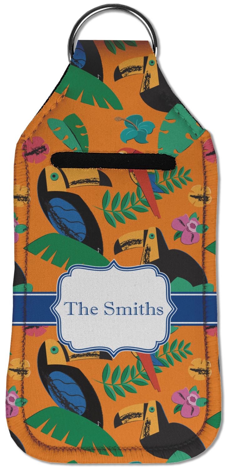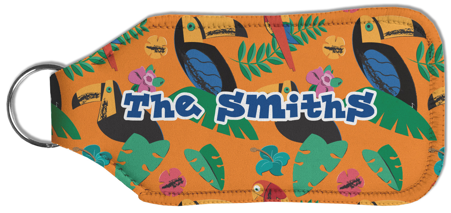 Each hand sanitizer holder comes with its own empty travel-sized, refillable hand sanitizer sure to fit snug in your customized sanitizer case! Our hand sanitizer cases are a durable, yet soft neoprene material sure to last any daily activities or travel agenda. Customize and personalize a hand sanitizer bottle holder with one of our two sizes - small (4.25" x 2.25") or large (5.5" x 2.5"). Each travel sanitizer holder comes with a keyring for attachment on bags, keys, or more!