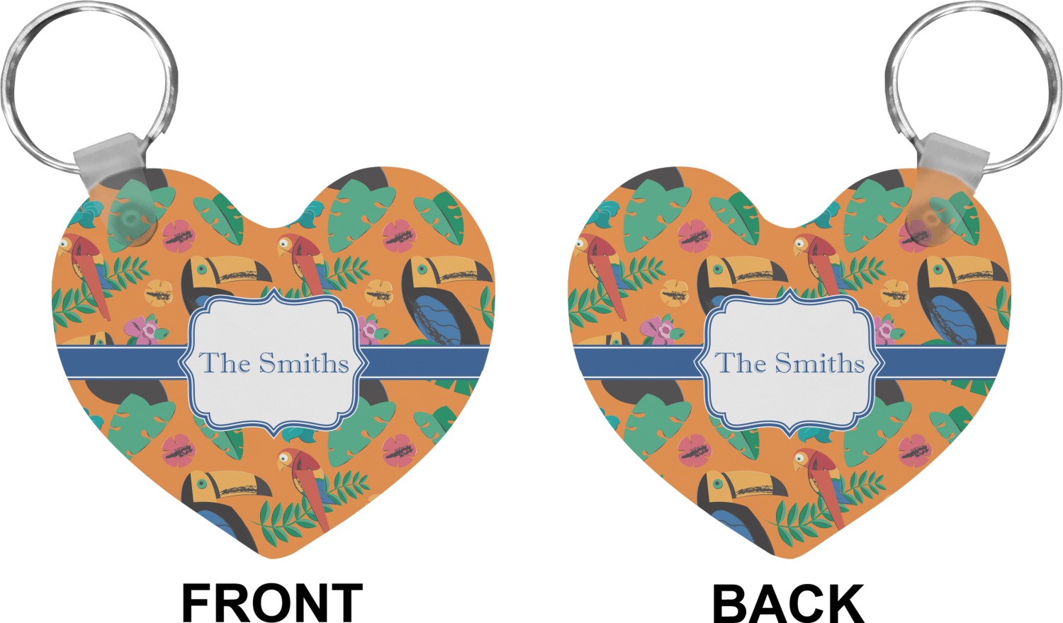 Our personalized keychains attach to the included metal, split key ring with a plastic, removable snap. Since a metal ring is included with your purchase, you have the liberty to keep your keys together on the ring, with or without your unique keychain. We offer this keychain in three different shapes: circle, heart, or diamond. We print your personalized design(s) on both sides of the key chain, and the surface has a glossy, reflective finish that only emphasizes your design. Each keychain is approximately 2.25 by 2.25 inches.