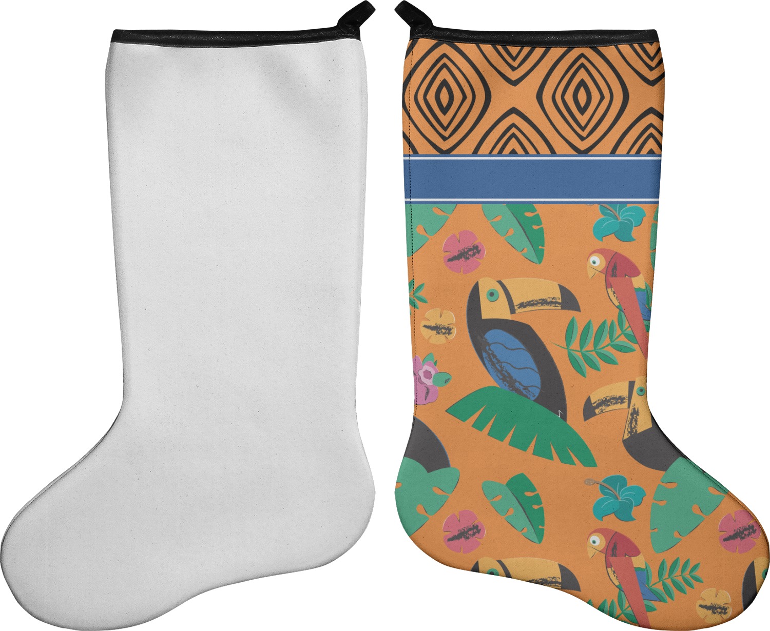 These 17" x 11" stockings are made of neoprene and have a black trim to give them a fantastic finished look. Your very own design is printed right onto the stocking, either single sided with white on the back or double sided where can use the same or different designs / patterns on the front and the back - the choice is yours. At the top of the stocking is a 2" loop for hanging.