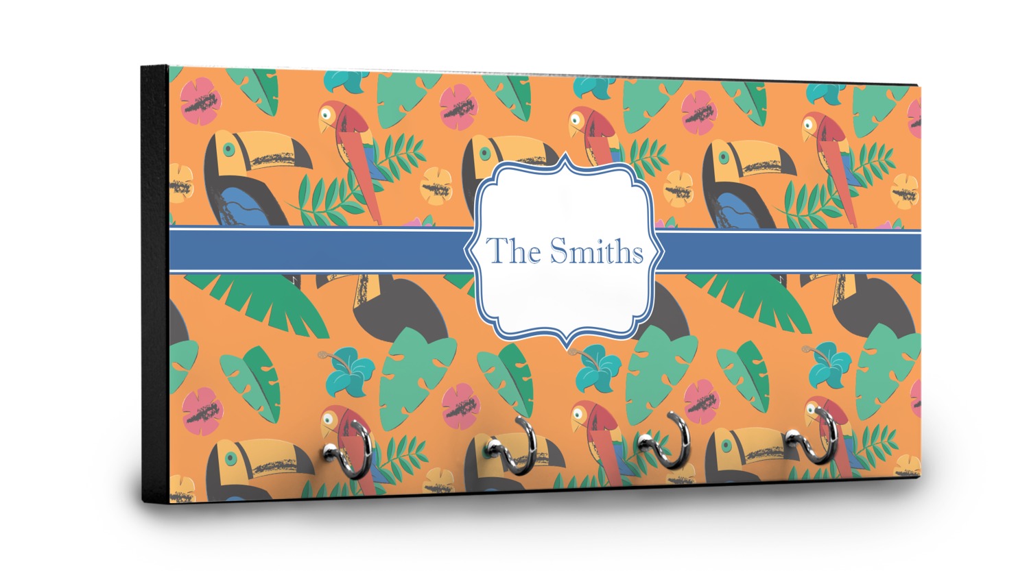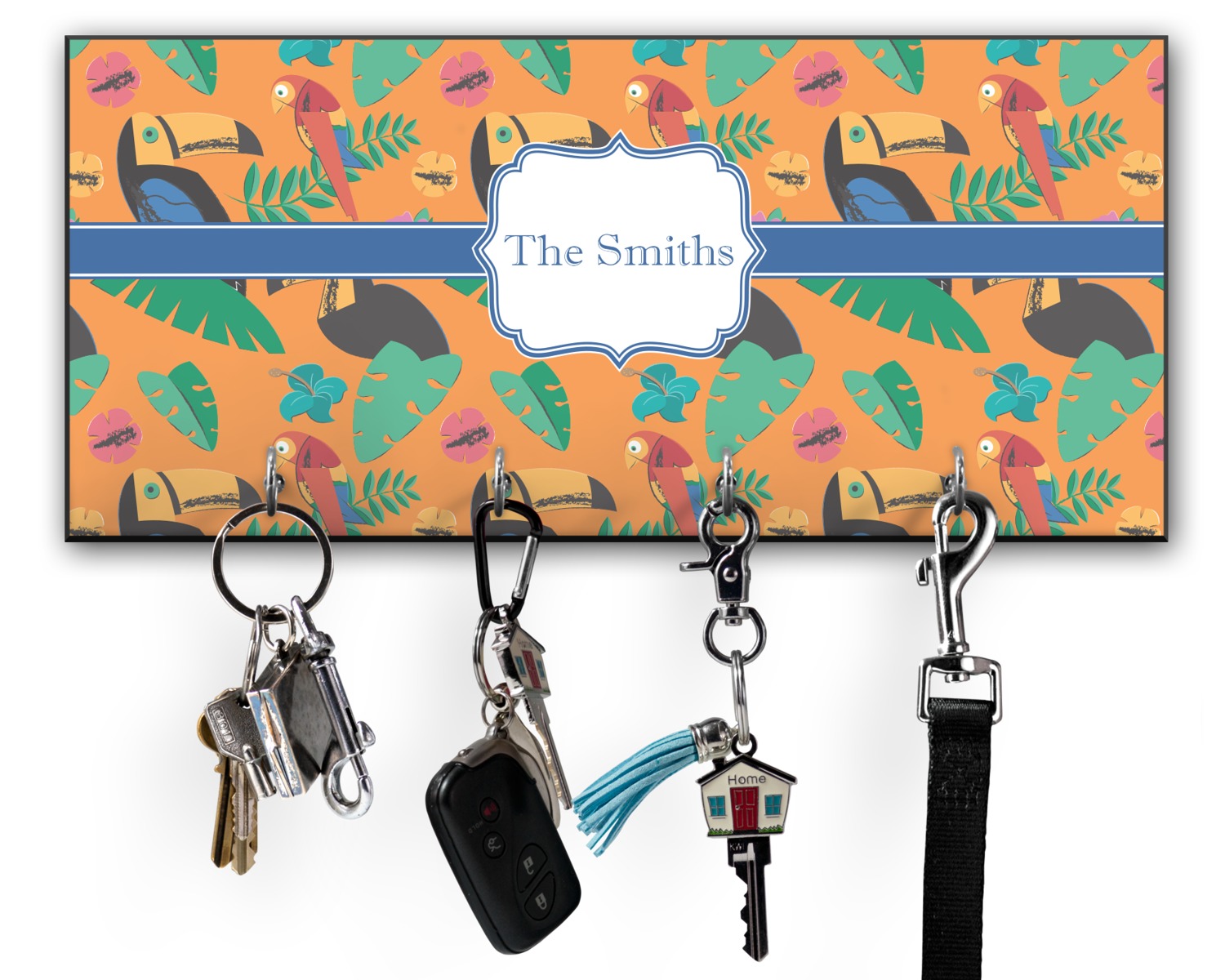 This 11" x 5" key hanger is made of sturdy wood and has four metal hooks lining the bottom. This is the perfect size for a family with several drivers. Not only can you hang keys on it though, but pet leashes and other small items. The board is black on the sides and back and is printed with the design of your choice on the front.