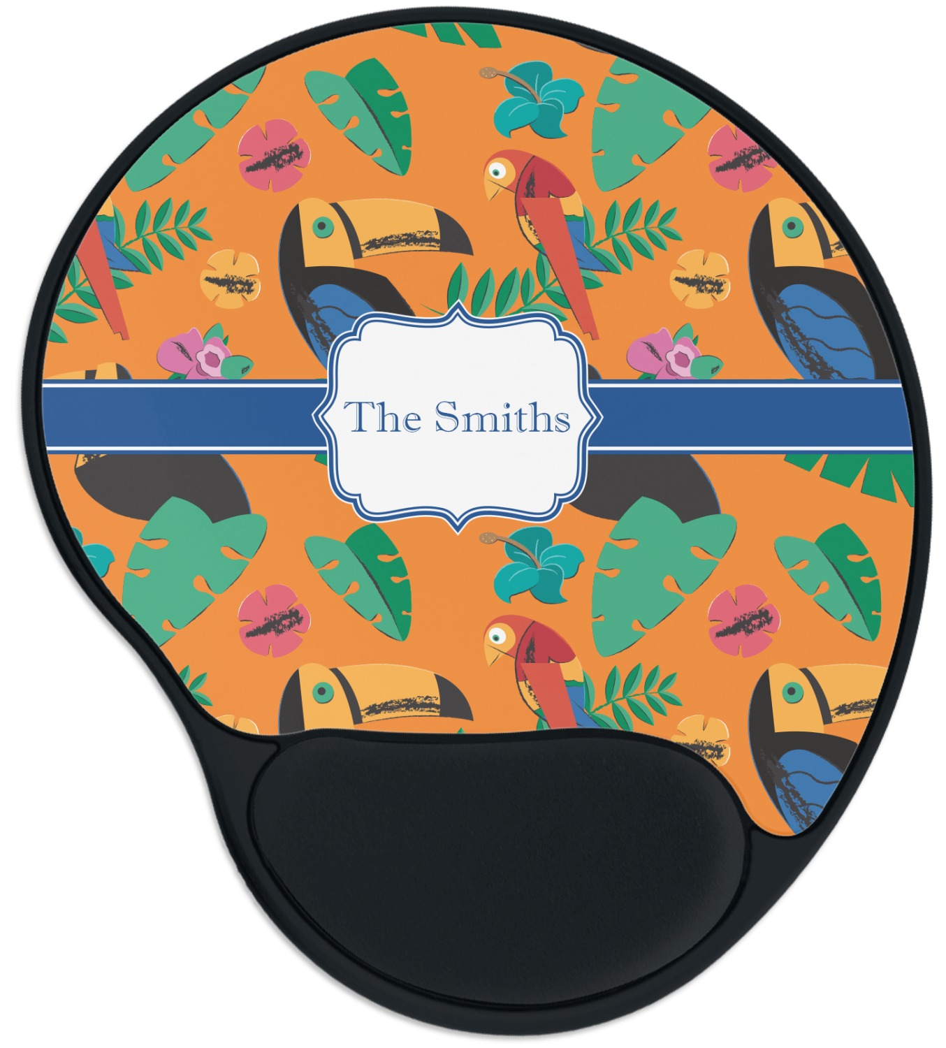 The top of these personalized mouse pads are made from a polyester, while the underside is plastic. The back of these mouse mats include rubber feet to prevent any slippage while in use. A padded wrist support, made from plush memory foam, occupies the bottom section of these computer mouse pads. Your customized design is printed onto the face of this mat, with the remaining sides and support piece colored in black. The mat itself is rounded and measures at 10.25" x 9.13".