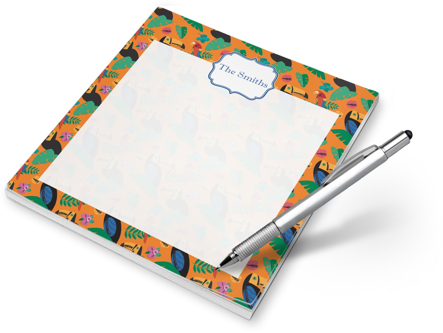 Your custom notepad features 50 sheets of thick, white paper, with your customization in the background and the edges. At approximately 6" x 5.5", these personalized memo pads are slightly larger than your average notepad. The individual notes tear easily from binding, which allows for quick, convenient, note-taking.