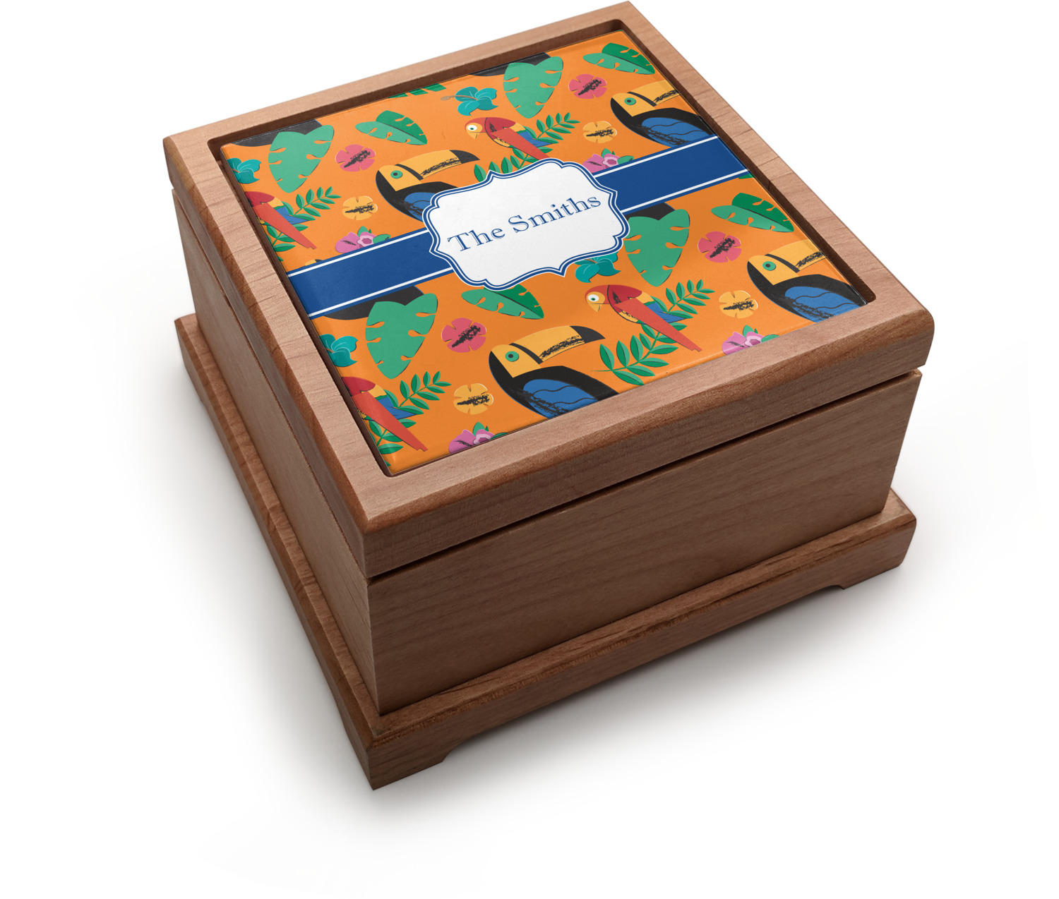 What's more classic Hawaiian than orange, rainbow-colored parrots, toucans, and flirty flowers? This bright design will send you straight back to better days, spent lounging on a beach in some tropical paradise.