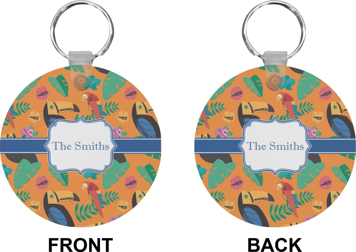 Our personalized keychains attach to the included metal, split key ring with a plastic, removable snap. Since a metal ring is included with your purchase, you have the liberty to keep your keys together on the ring, with or without your unique keychain. We offer this keychain in three different shapes: circle, heart, or diamond. We print your personalized design(s) on both sides of the key chain, and the surface has a glossy, reflective finish that only emphasizes your design. Each keychain is approximately 2.25 by 2.25 inches.