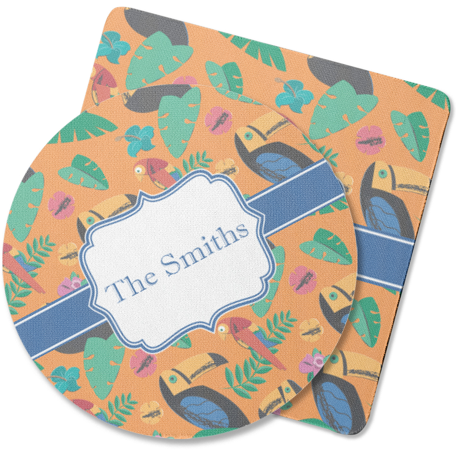 These drink coasters have a smooth, polyester top and a textured, rubber backing on its bottom. The non-slip rubber backing underneath works to keep any spills at bay. At 4 by 4 by 0.25 inches thick, these custom coasters are a suitable size for most drinkware. Your personalization is displayed atop the face of the cup coaster. We sell these rubber coasters in two different shapes: square and round. You can buy each shape as singulars or as a set of 4.