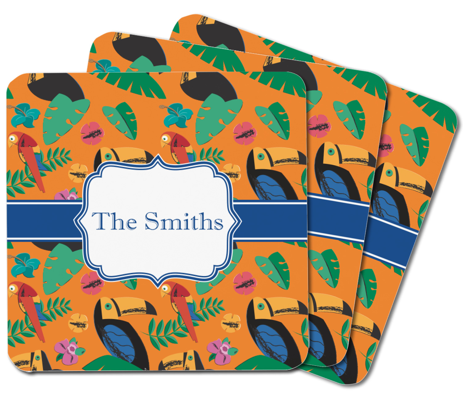 What's more classic Hawaiian than orange, rainbow-colored parrots, toucans, and flirty flowers? This bright design will send you straight back to better days, spent lounging on a beach in some tropical paradise.