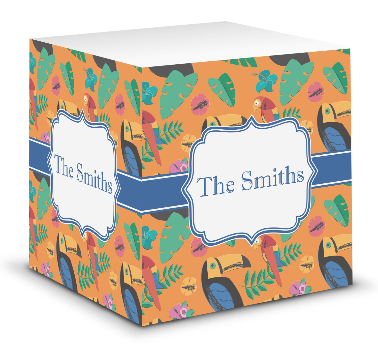 This note cube features 700 sheets of matte, white paper. Each sheet measures at 3.5 by 3.5 inches and has an adhesive strip at its top. Your personalized design is displayed on all four edges of the sticky pad.