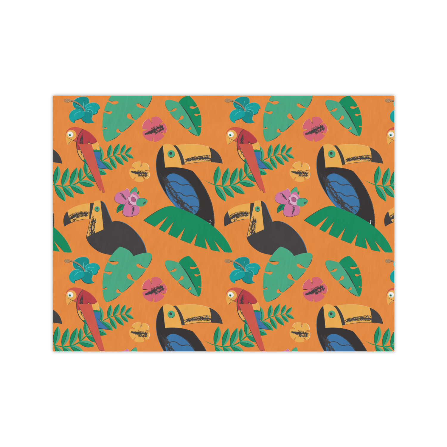 What's more classic Hawaiian than orange, rainbow-colored parrots, toucans, and flirty flowers? This bright design will send you straight back to better days, spent lounging on a beach in some tropical paradise.