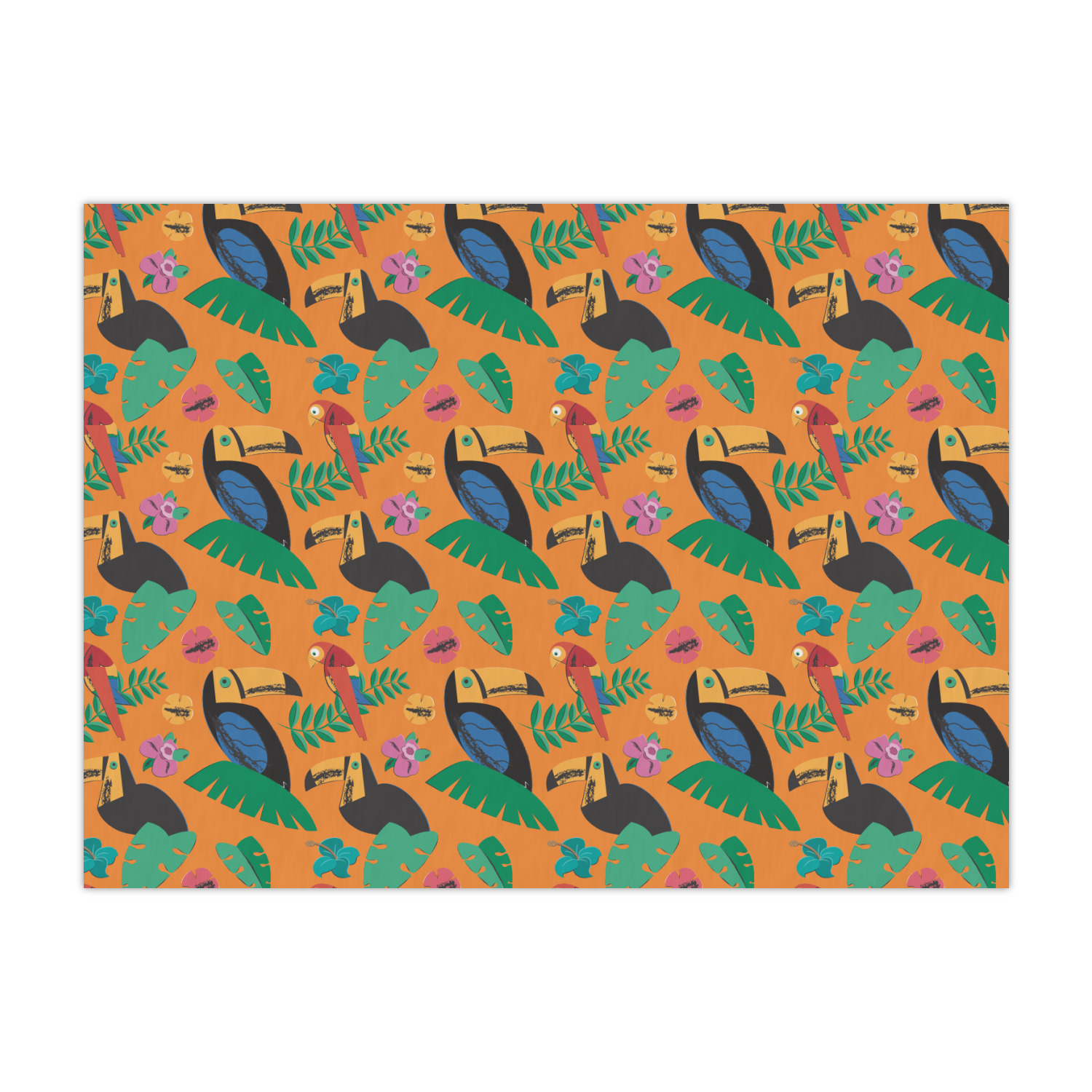What's more classic Hawaiian than orange, rainbow-colored parrots, toucans, and flirty flowers? This bright design will send you straight back to better days, spent lounging on a beach in some tropical paradise.