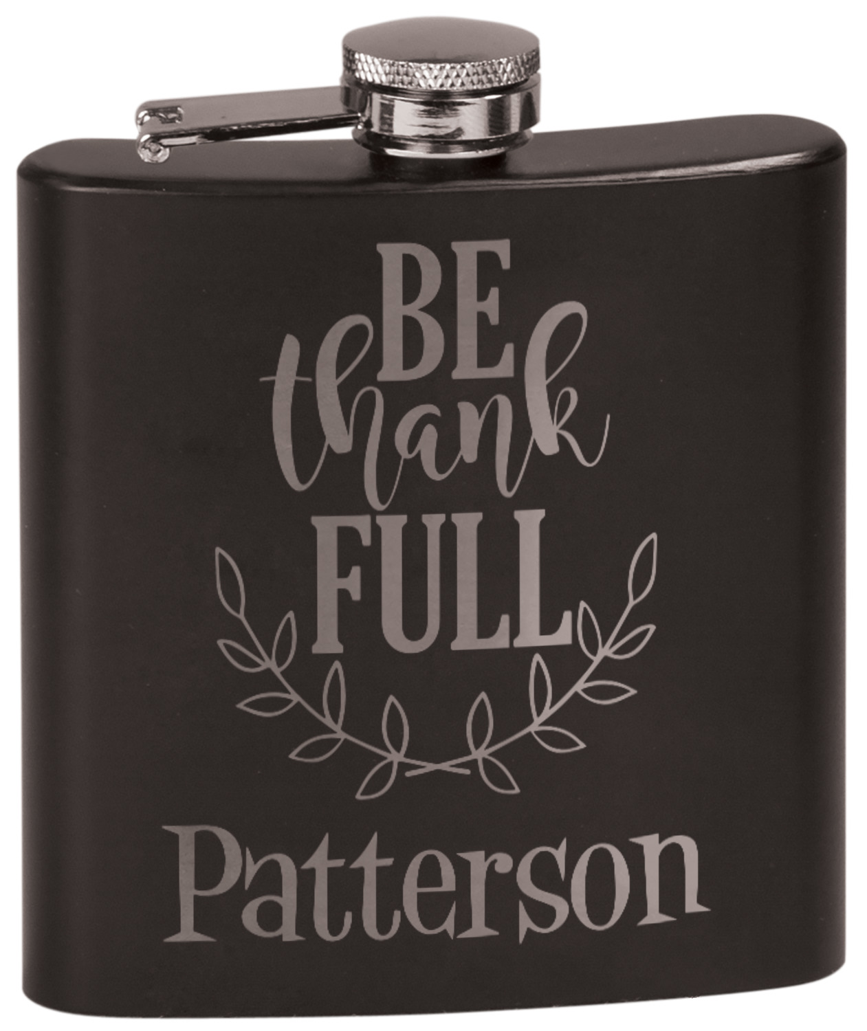 You'll always look classy when drinking when you use our black flask! These personalized flasks have a sleek, black look that will look lovely alongside your other bar-ware and accessories! After you've customized one for yourself, craft one for a friend or loved one!