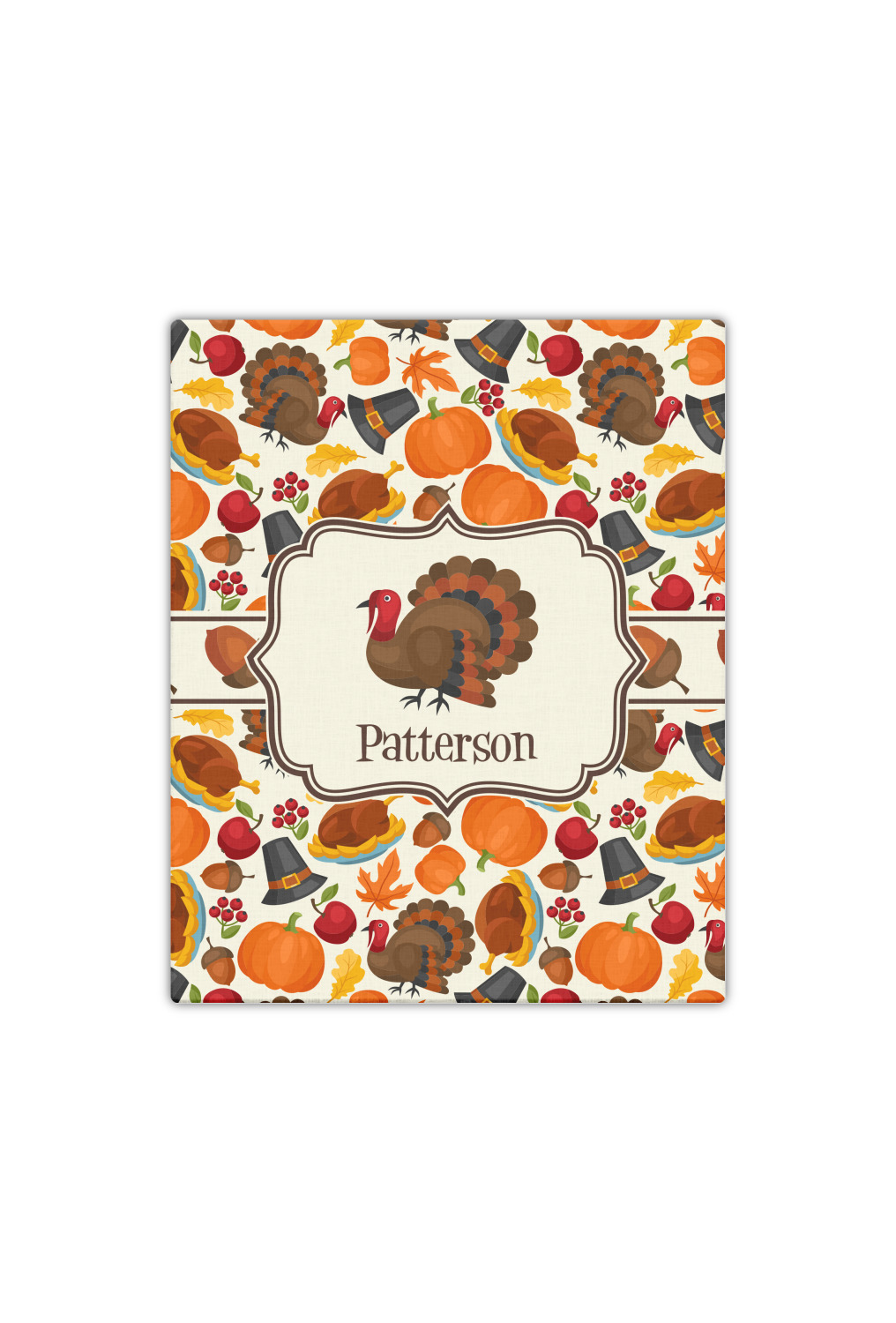 This traditional thanksgiving design is perfect for celebrating the season of giving thanks. This classic design includes turkey, pumpkin, pilgirm hat, berries, apples, acorns and leaves. The background on this design is re-color-able; and we chose the light yellow from the fall / thanksgiving color palette in our customization system.