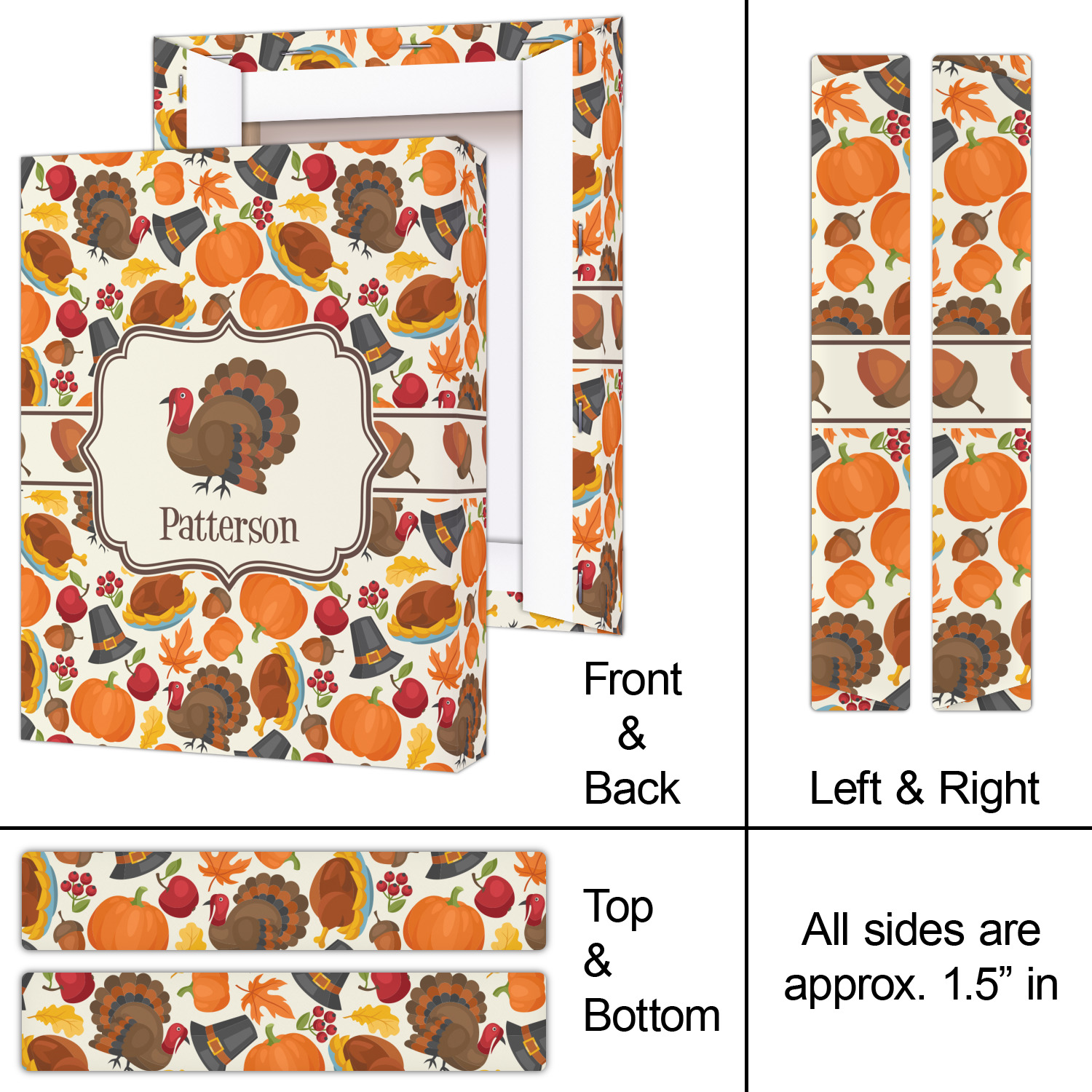 This traditional thanksgiving design is perfect for celebrating the season of giving thanks. This classic design includes turkey, pumpkin, pilgirm hat, berries, apples, acorns and leaves. The background on this design is re-color-able; and we chose the light yellow from the fall / thanksgiving color palette in our customization system.