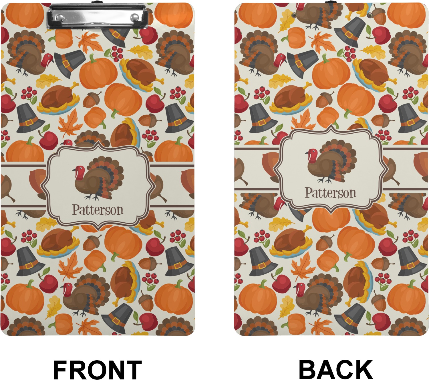 These custom clipboards are made from a strong hardboard and are coated with a glossy finish that accentuates the colors of your design. Alongside a retractable hook at its top, these decorative clipboards also feature sturdy clips to secure several sheets of paper. We sell these clipboards in two separate sizes. Our letter size measures at 12.5" L x 9" W, while our legal clipboard is approximately 15.5" L x 9" W. On both models, your personalization is printed on both sides of this clipboard and can be customized individually.