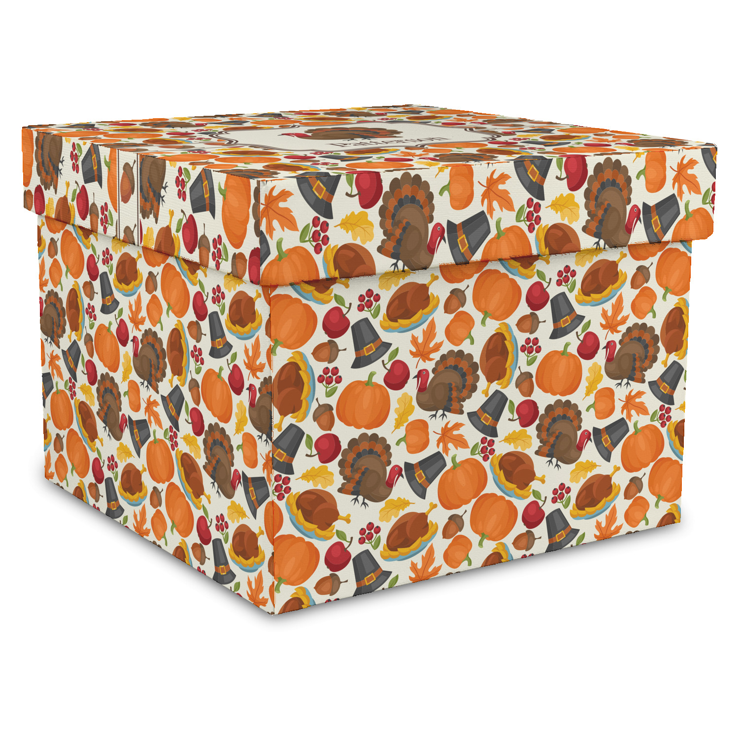 We chose a ribbon with acorns and a decorative label with a turkey graphic and name personalization.