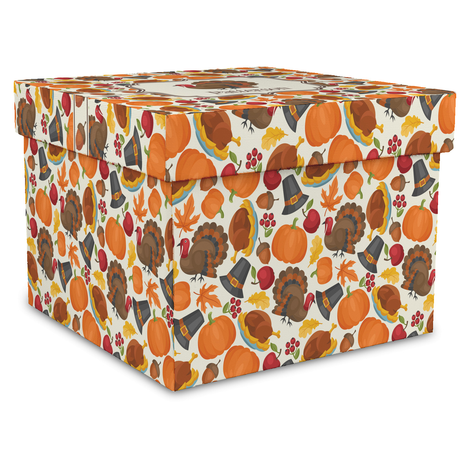 We chose a ribbon with acorns and a decorative label with a turkey graphic and name personalization.