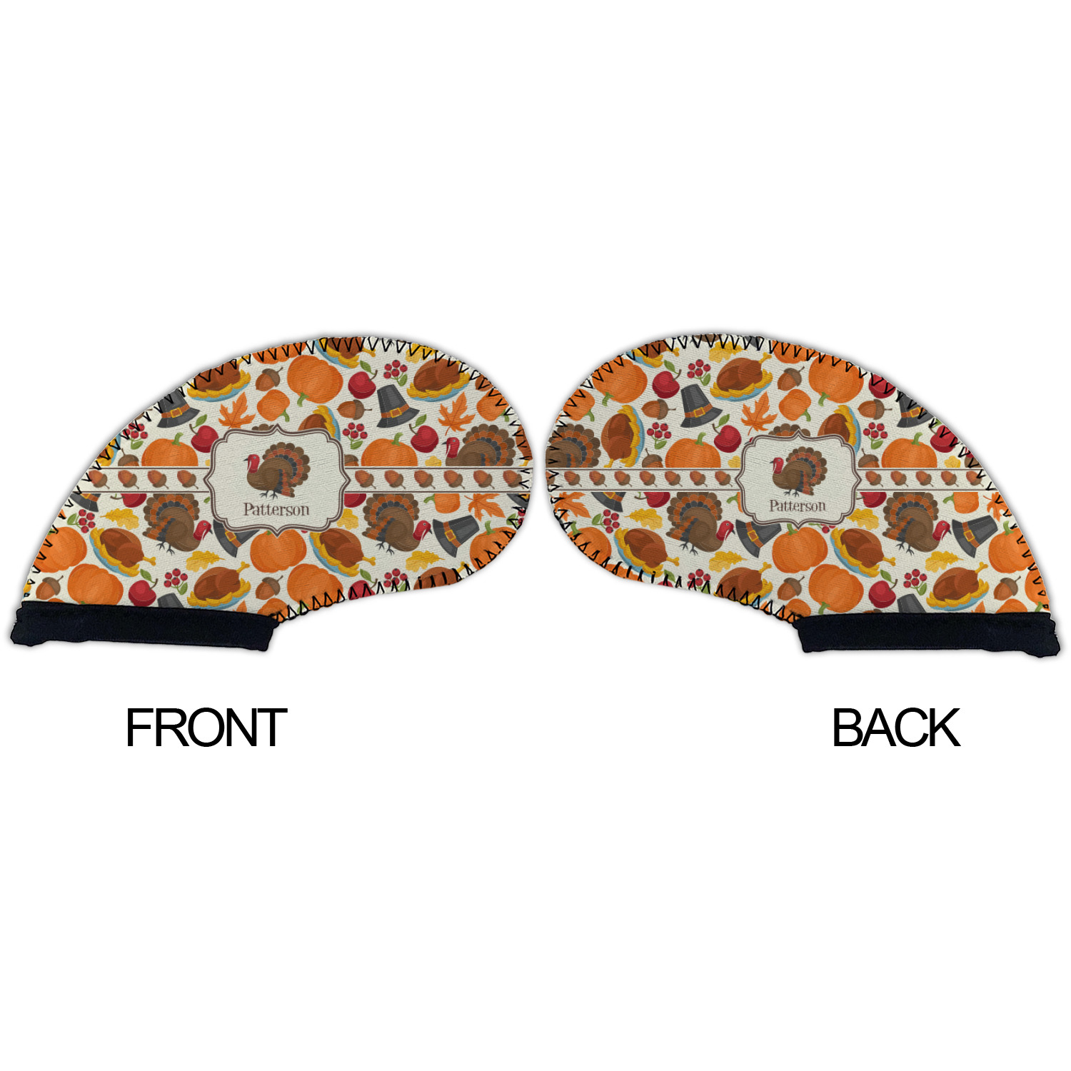 This traditional thanksgiving design is perfect for celebrating the season of giving thanks. This classic design includes turkey, pumpkin, pilgirm hat, berries, apples, acorns and leaves. The background on this design is re-color-able; and we chose the light yellow from the fall / thanksgiving color palette in our customization system.