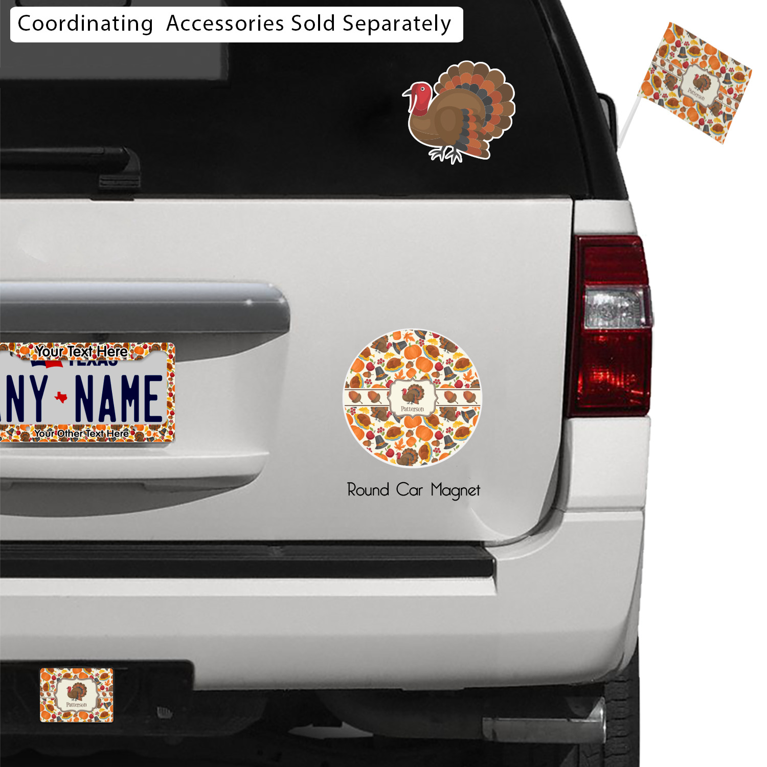 This traditional thanksgiving design is perfect for celebrating the season of giving thanks. This classic design includes turkey, pumpkin, pilgirm hat, berries, apples, acorns and leaves. The background on this design is re-color-able; and we chose the light yellow from the fall / thanksgiving color palette in our customization system.