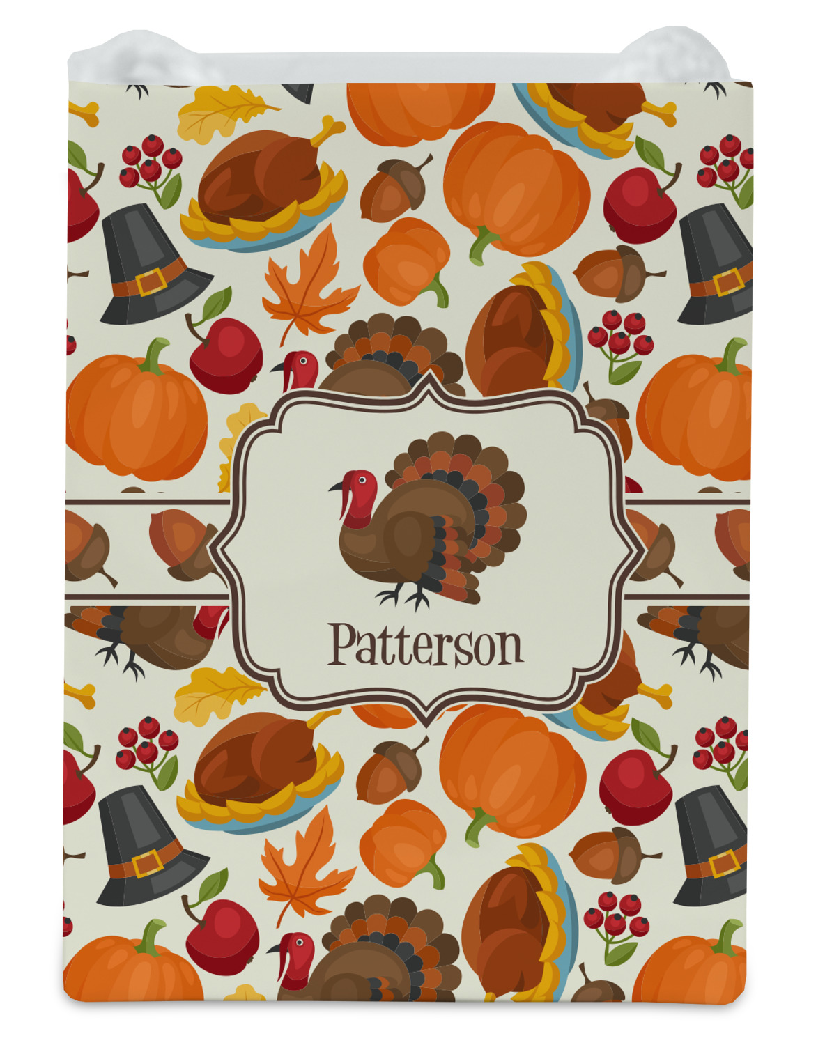 We chose a ribbon with acorns and a decorative label with a turkey graphic and name personalization.