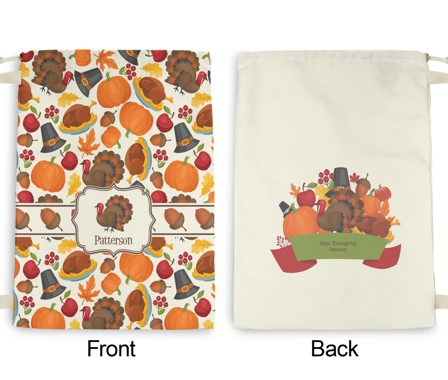 This traditional thanksgiving design is perfect for celebrating the season of giving thanks. This classic design includes turkey, pumpkin, pilgirm hat, berries, apples, acorns and leaves. The background on this design is re-color-able; and we chose the light yellow from the fall / thanksgiving color palette in our customization system.