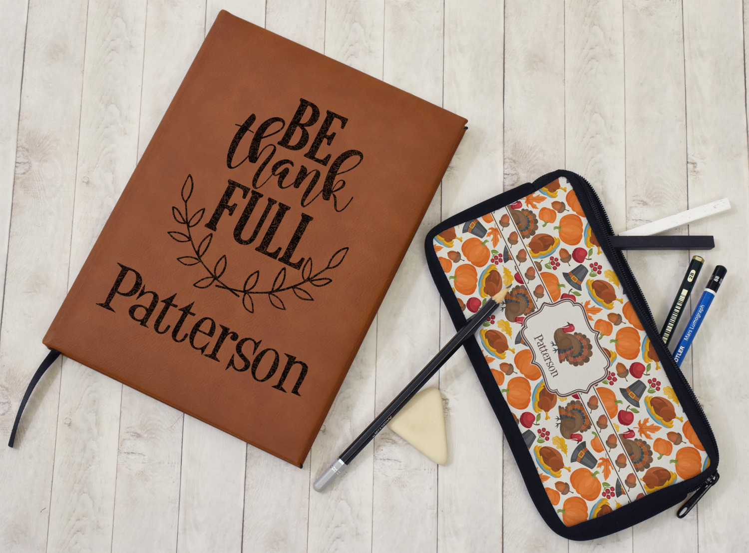 We chose a ribbon with acorns and a decorative label with a turkey graphic and name personalization.