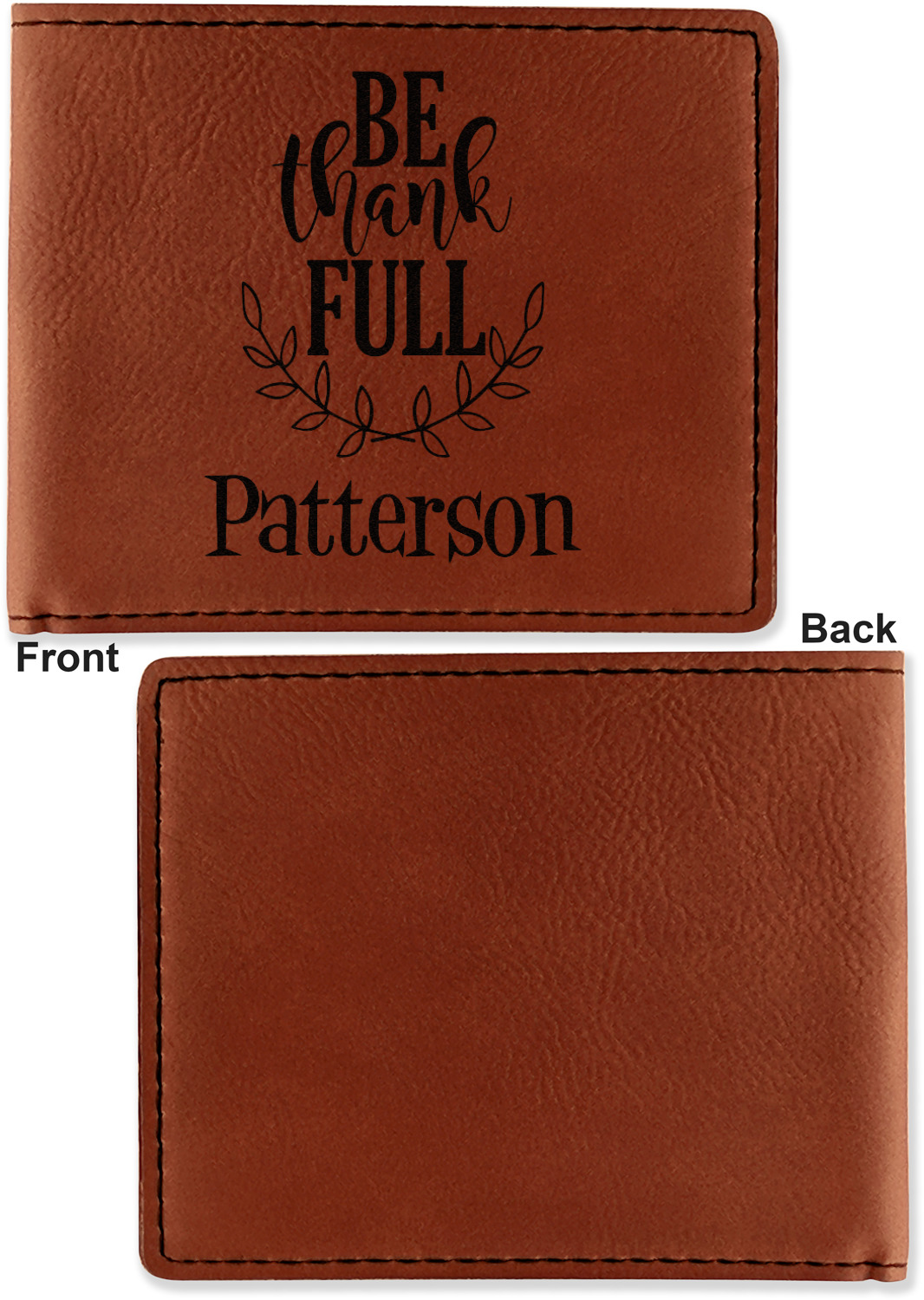 Your bifold wallet will be personalized by laser engraving, which will be a black color on the wallet. Choose a graphic, text, or monogram to personalize your wallet. There are thousands of choices in our design center.