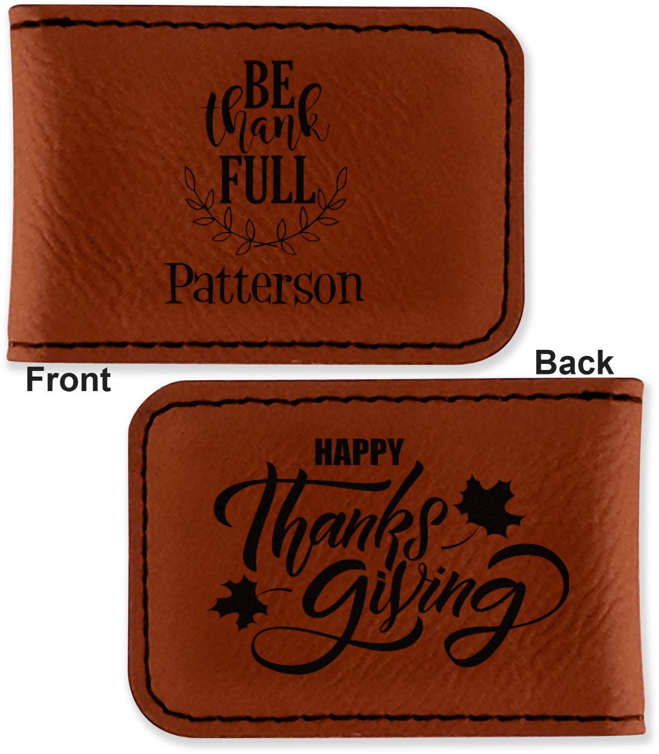 Your money clip will be laser engraved so that the design you choose will come out black. Find a fun graphic, monogram, or font to use to personalize your money clip either on just the front or the front and the back.