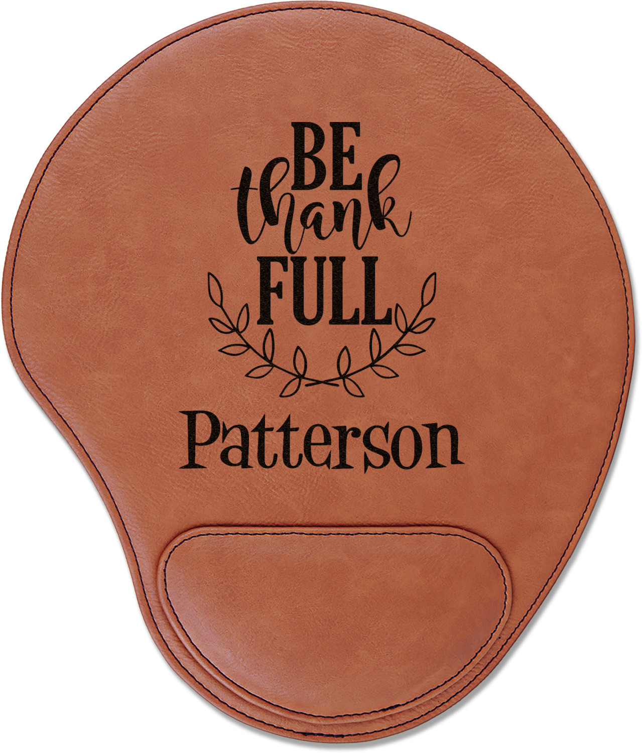 In a rounded shape, this mouse pad is made of a luxurious, cognac-colored leatherette. The nature of this material allows your mouse to glide smoothly across its surface. Strong stitching lines the edges to guarantee stability and strength. As added support for tired wrists, your personalized mouse pad features a supportive wrist rest at its bottom. This model measures at 10.25" x 9", while its wrist pad is approximately 5" x 2.75", with a thickness of 0.75". Your personalized design is laser engraved into the front face of this mouse pad.